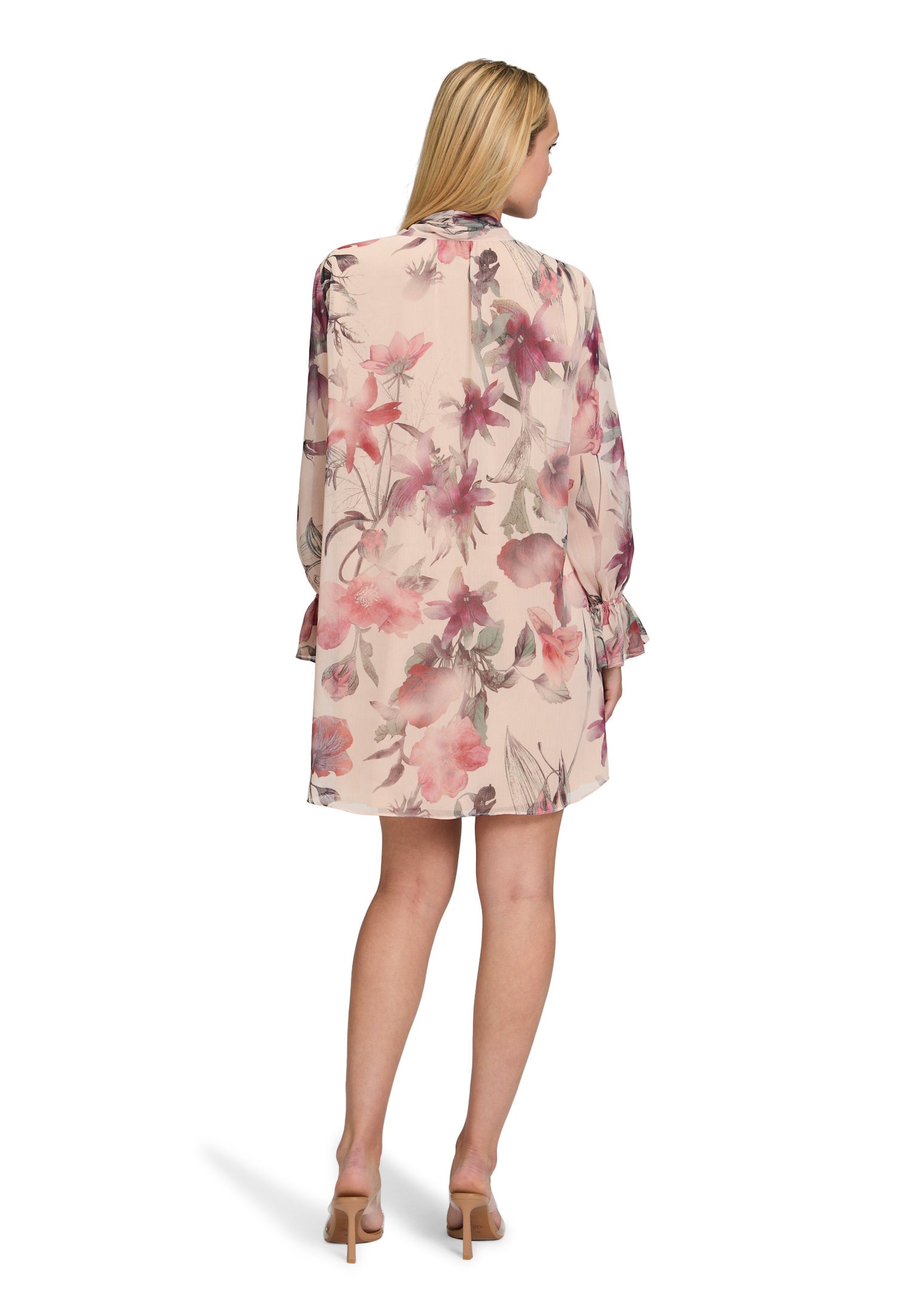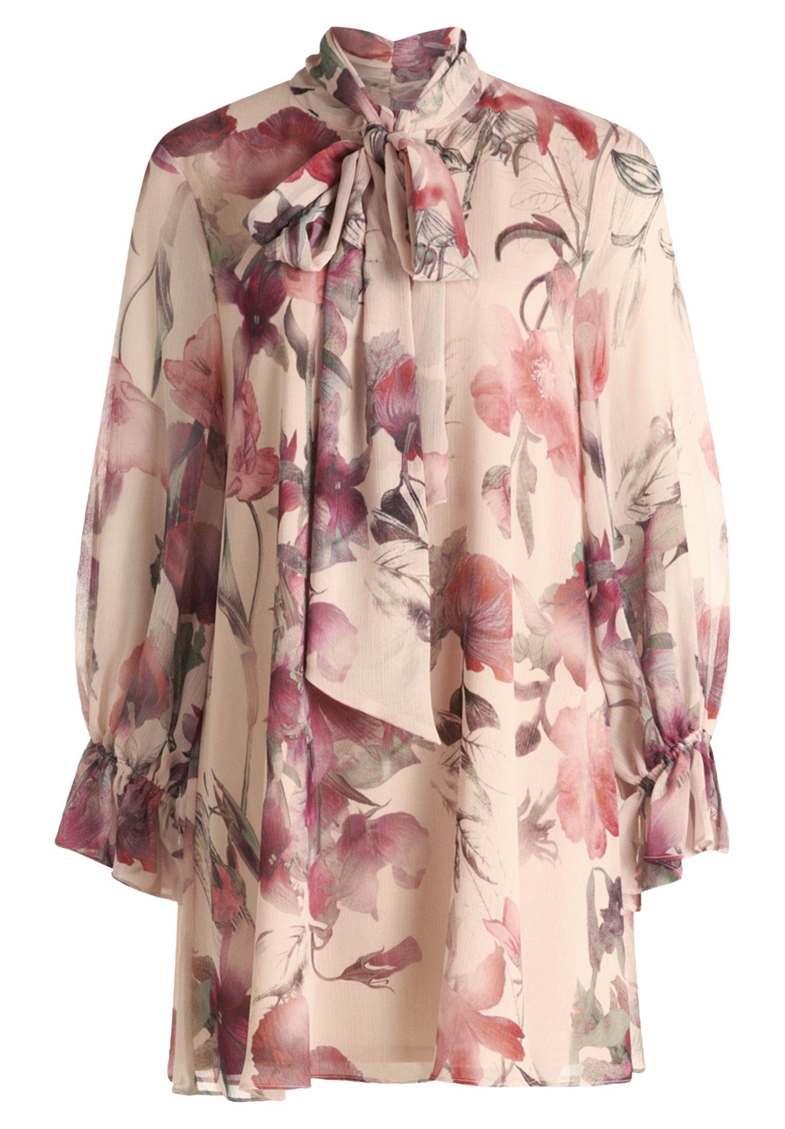 * Passform: Ausgestellt * Gesamtlänge: 88 cm * Länge ab Taille: 46 cm * Ärmellänge: Langarm * Ausschnittform: V-Ausschnitt * Kragenform: Schluppenkragen * Materialart: Chiffon * Verschluss: Ohne Verschluss * Muster: Floral / Blumen * Futter: 100% Polyester