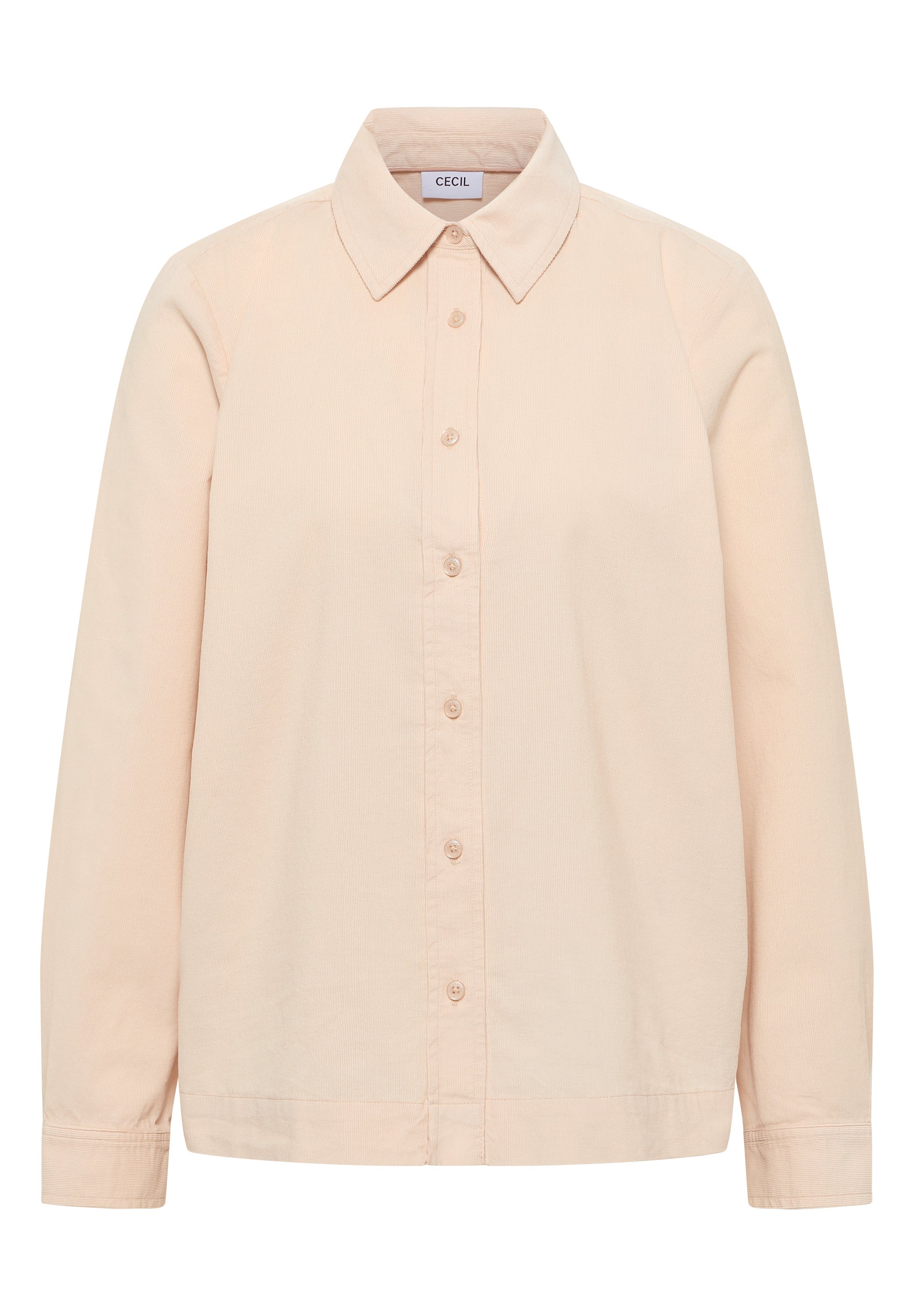 Die Cordbluse von CECIL für Damen ist aus reiner Baumwolle gefertigt und punktet mit ihrem weichen Cordstoff. Hemdkragen und langärmeliger Schnitt mit Knopf-Bündchen machen sie zum vielseitigen Kombiteil. Ideal für strukturstarke Casual-Looks. Damenbluse Hemdkragen Langarm mit Bündchen und Knopf Reine Baumwolle Weicher Cordstoff Material: 100% Baumwolle