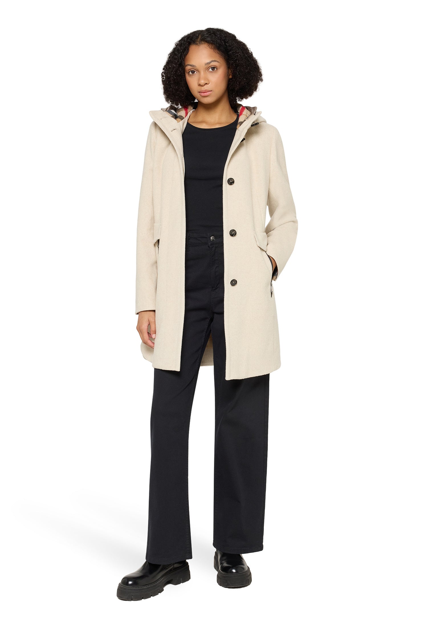 * Passform: Tailliert * Gesamtlänge: 87 cm * Ärmellänge: Langarm * Kapuze: Nicht abnehmbar * Tasche: Reißverschluss, Pattentaschen * Verschluss: Verdeckter Verschluss, Knopfleiste * Muster: Uni * Füllung: 100% Polyester * Futter: 100% Polyester * Besatz: 100% Polyamid | Besatz2: 45% Polyacryl, 30% Polyester, 20% Wolle, 5% Diverse Faserarten