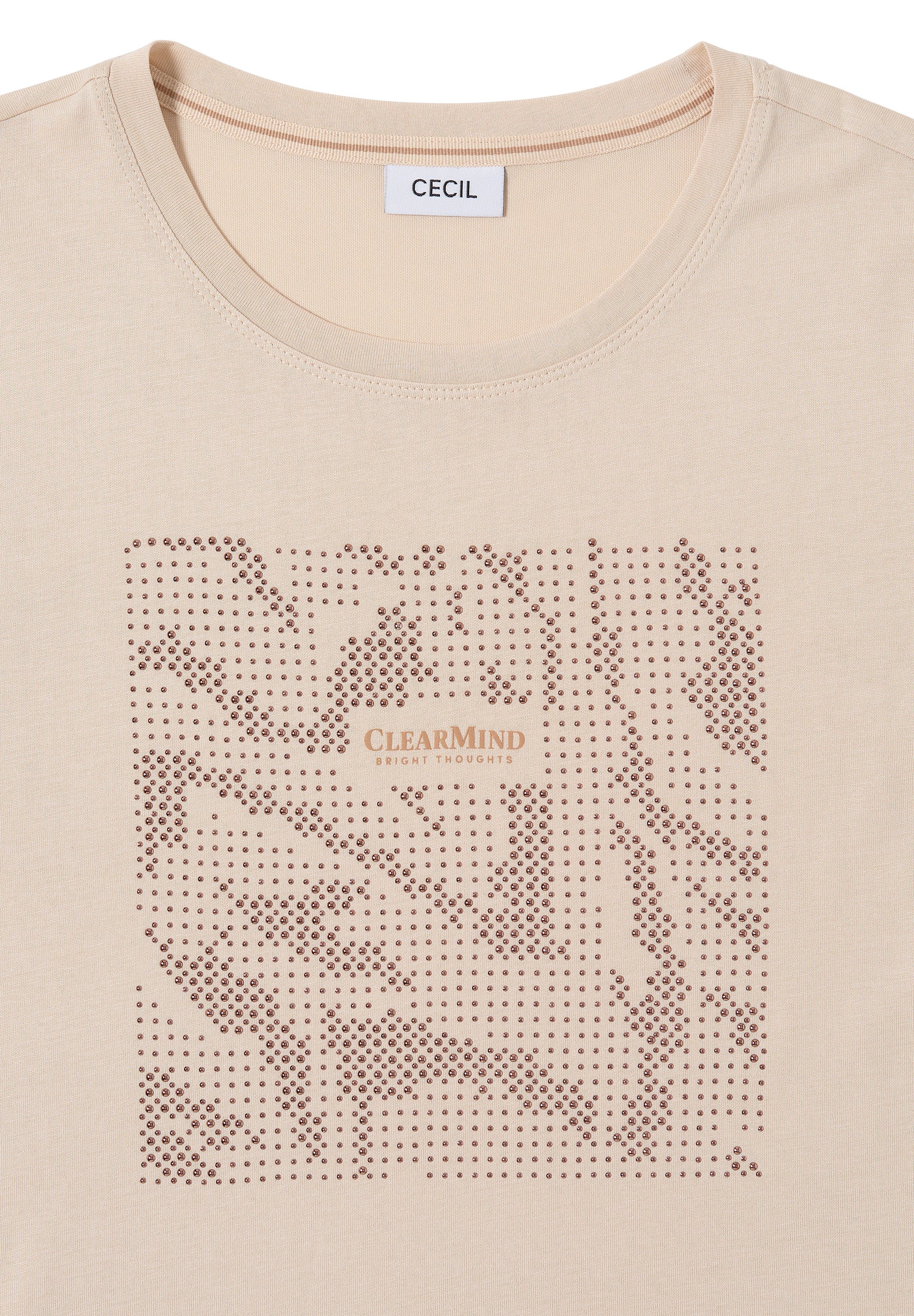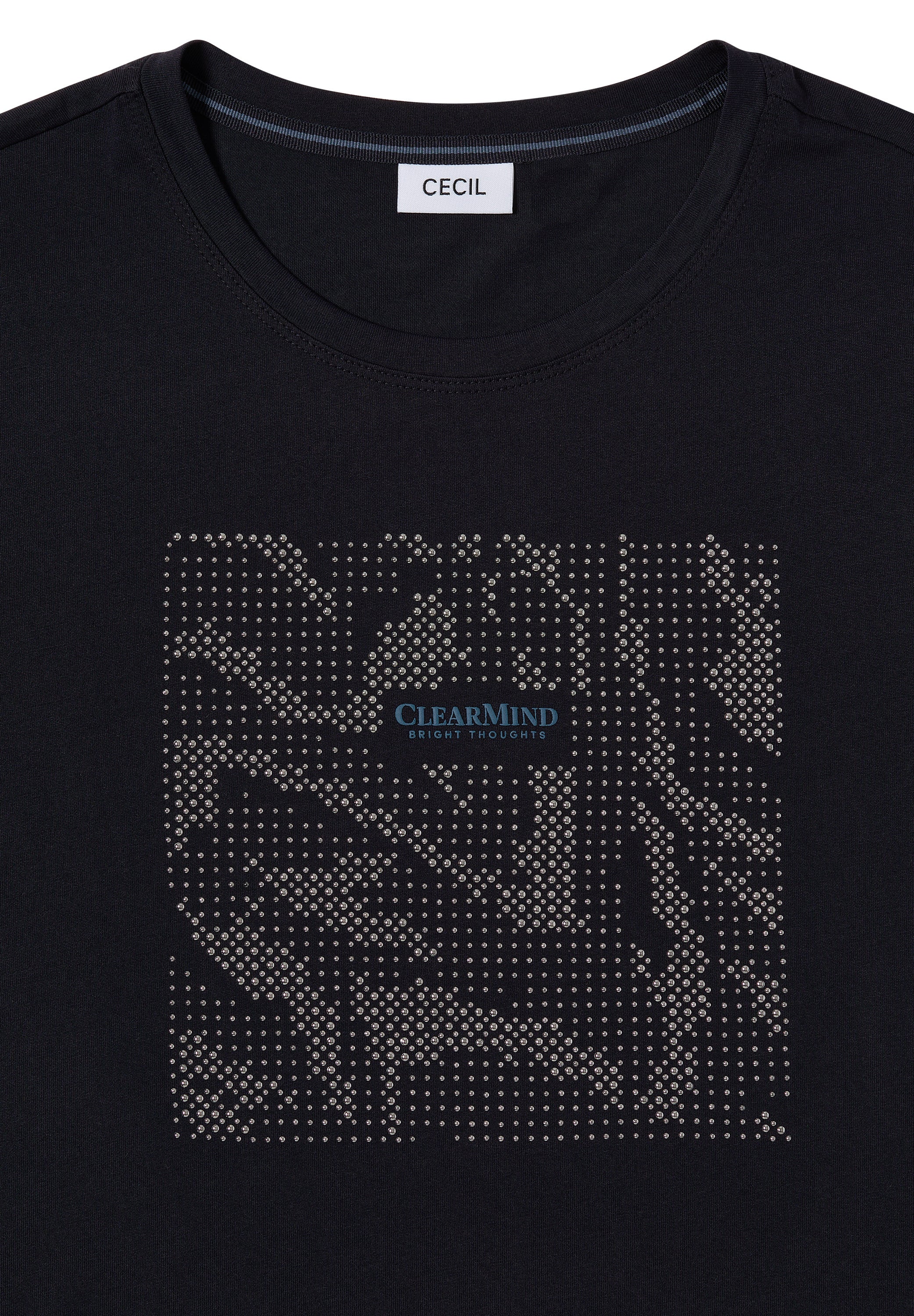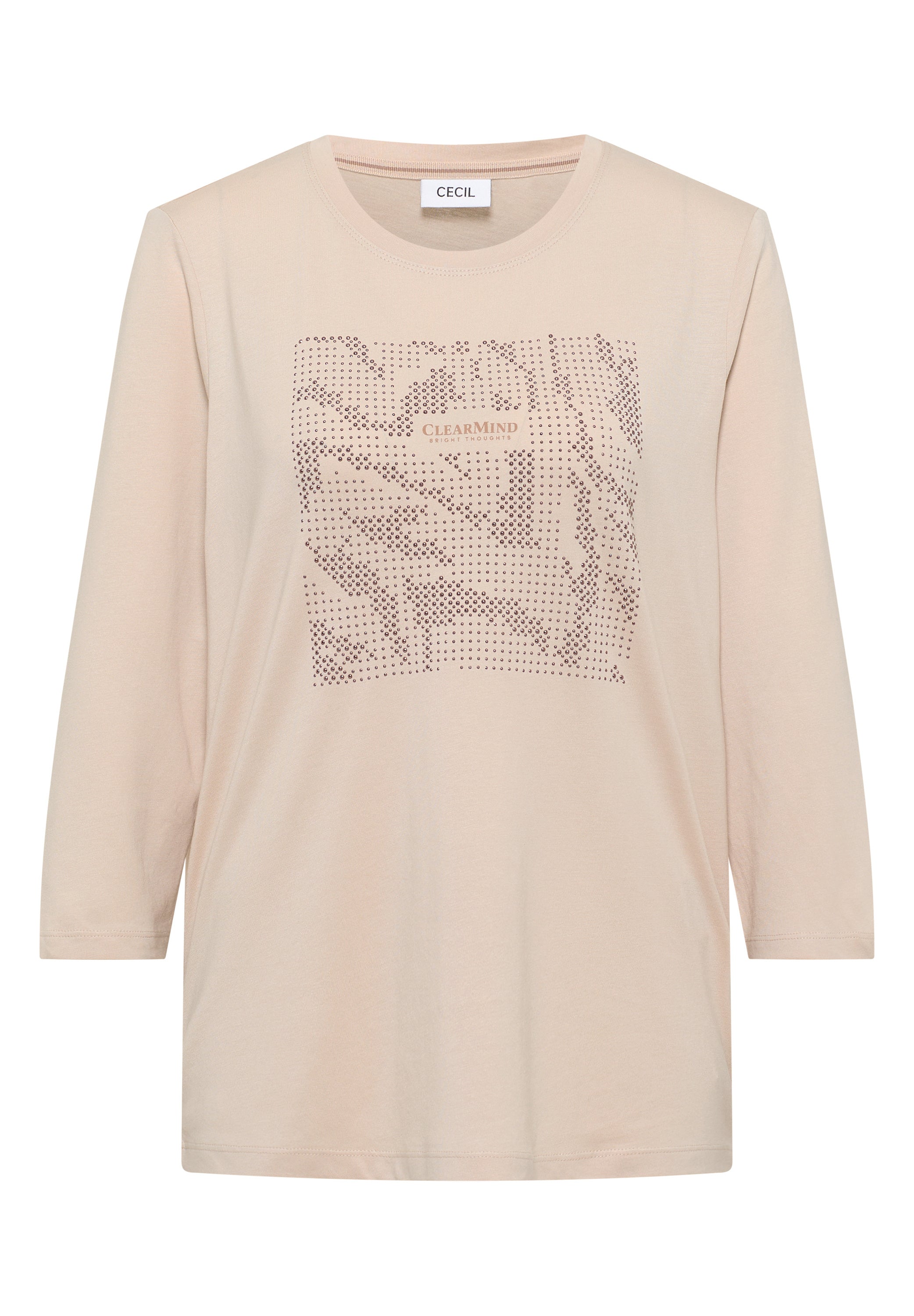 Dieses Shirt von CECIL für Damen bringt mit seinem glitzernden Motiv aus Schmucksteinen funkelnde Akzente in deinen Look. Der Rundhalsausschnitt, der 3/4-Arm und der softe Baumwoll-Modalmix machen es besonders trageangenehm. Perfekt für feminine Casual-Outfits. Damenshirt Rundhalsausschnitt 3/4-Arm Motiv aus Schmucksteinen Softer Baumwoll-Modalmix Material: 50% Modal, 50% Baumwolle