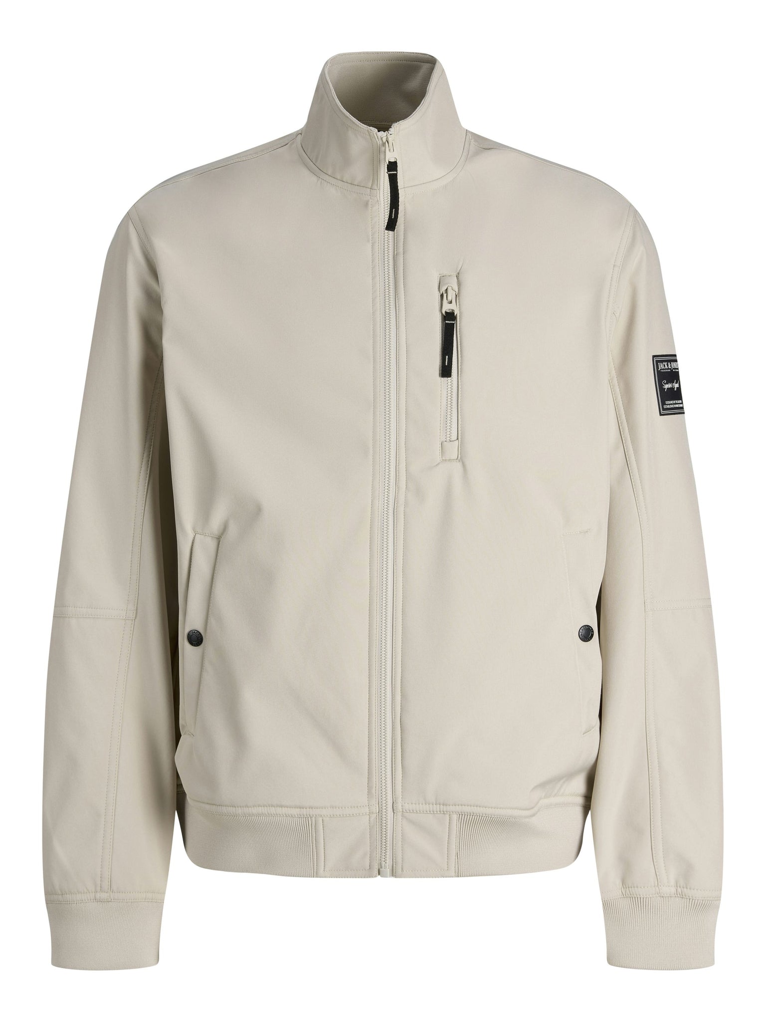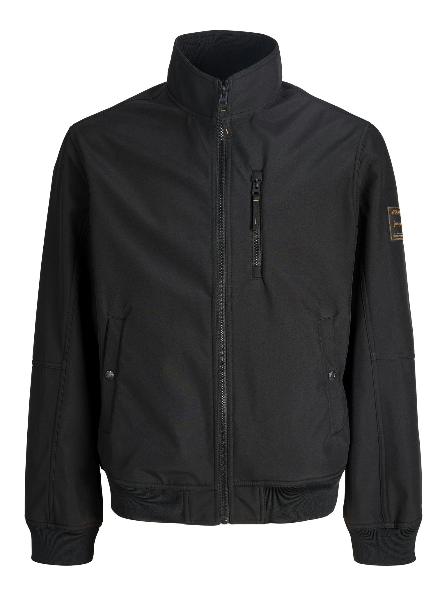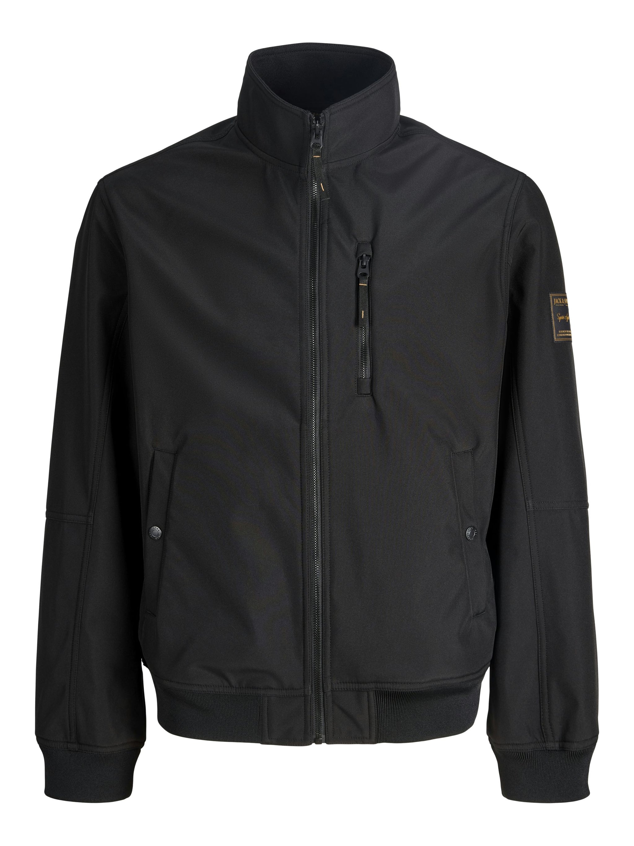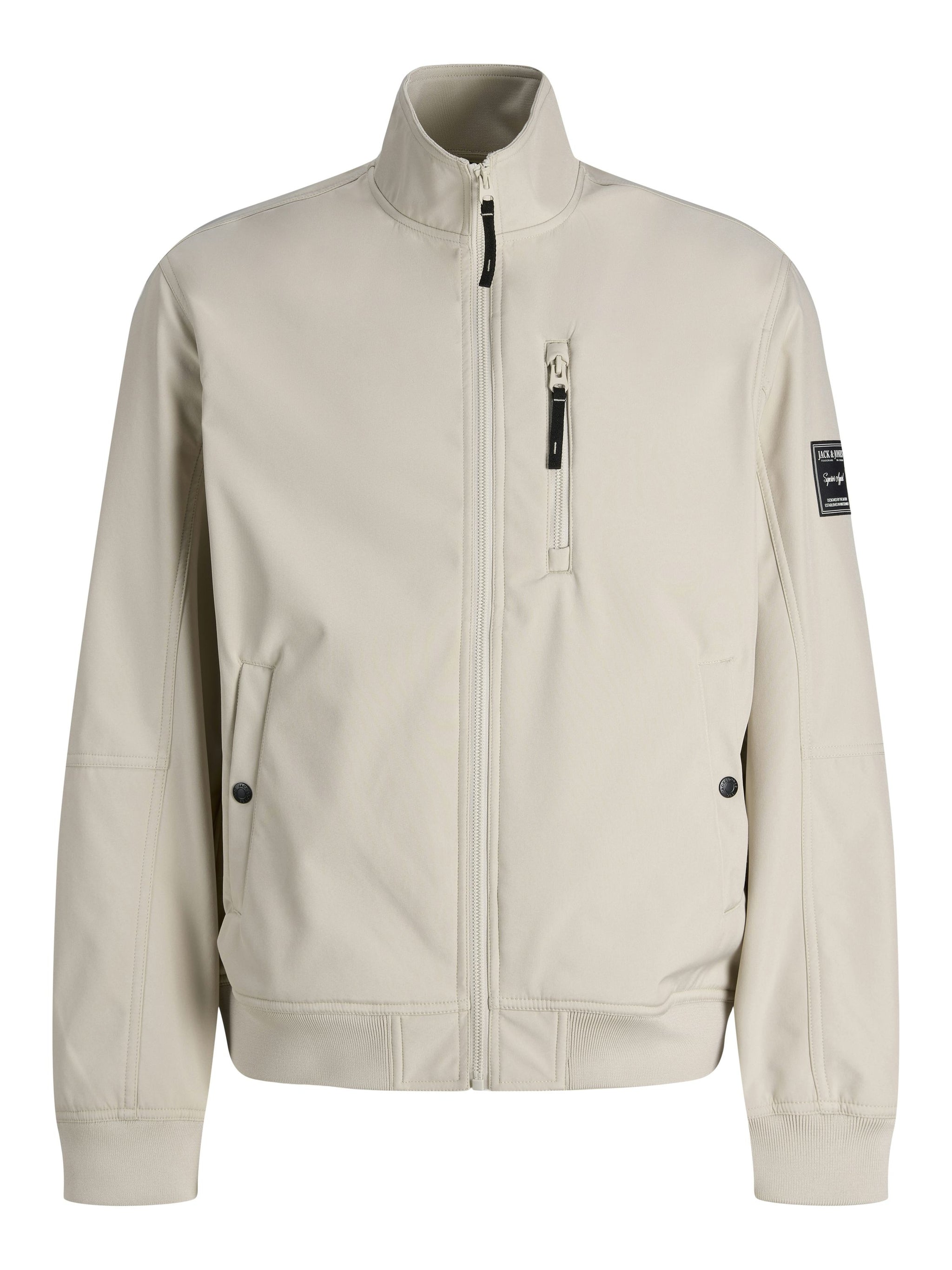Style einen lässigen Look mit einer hochwertigen Jacke für den Alltag.Webstoff ist fest und robust und dehnt sich nicht wie gestrickte Stoffe. - Produkttyp : Softshell Jacke - Hals : Stehkragen - Ärmel : Langarm - Manschetten : Gerippte Ärmelbündchen - Taschen : Brusttasche mit Reißverschluss, Vordertaschen mit Knopfverschluss - Länge/Größe : Kurz - Details : Abzeichen - Lebensstil : Im Freien