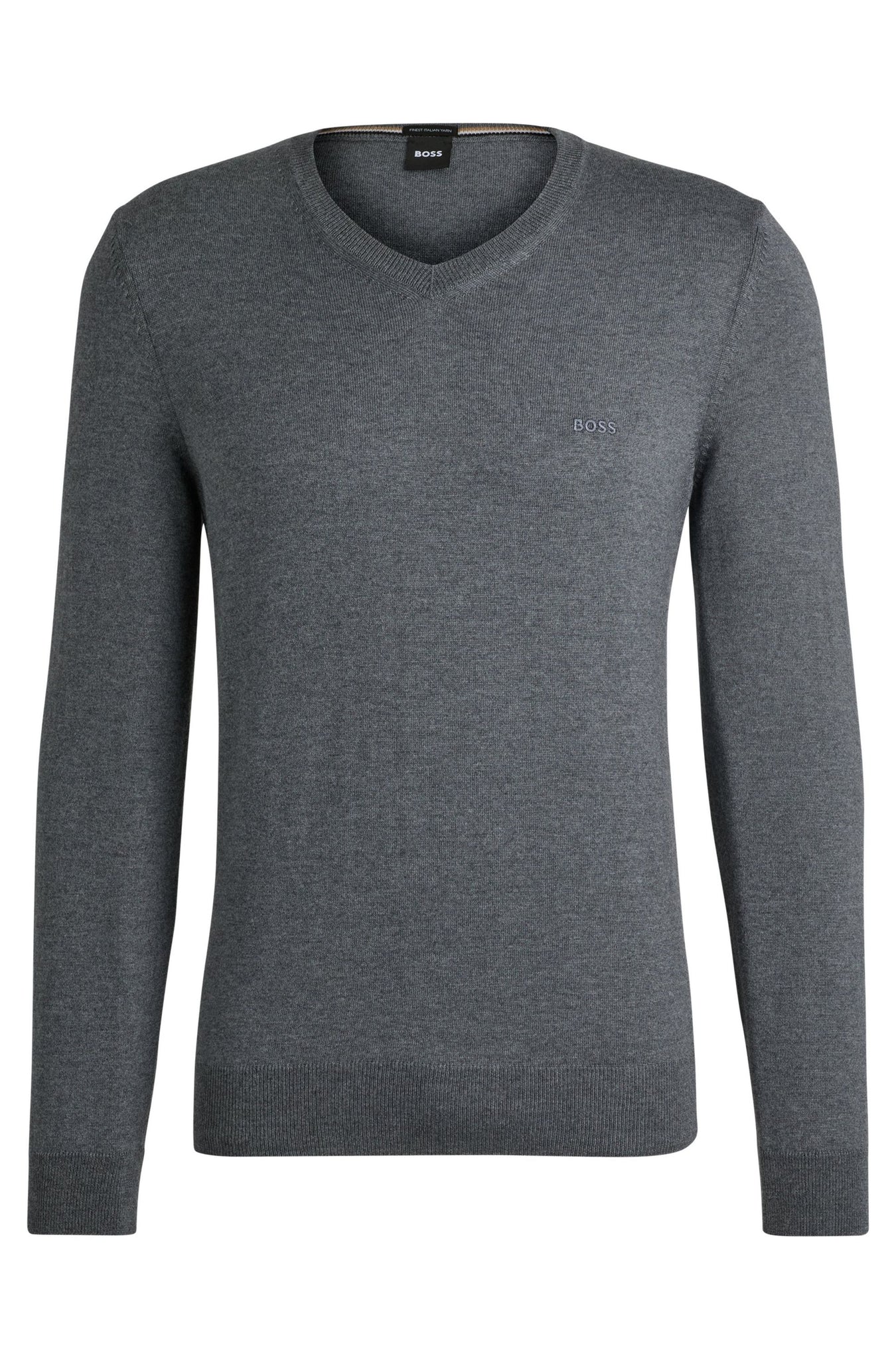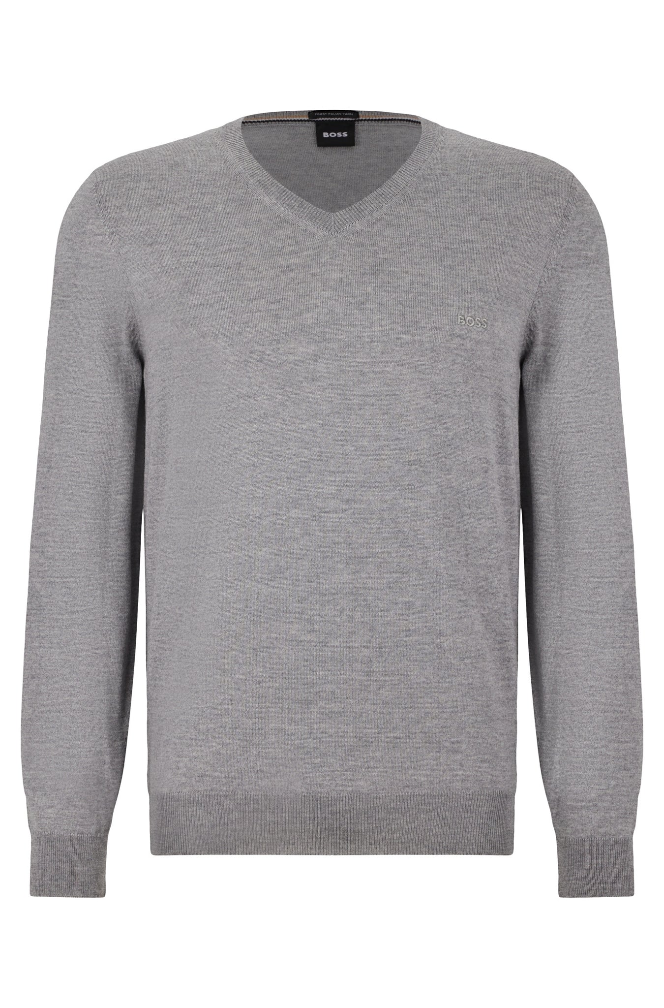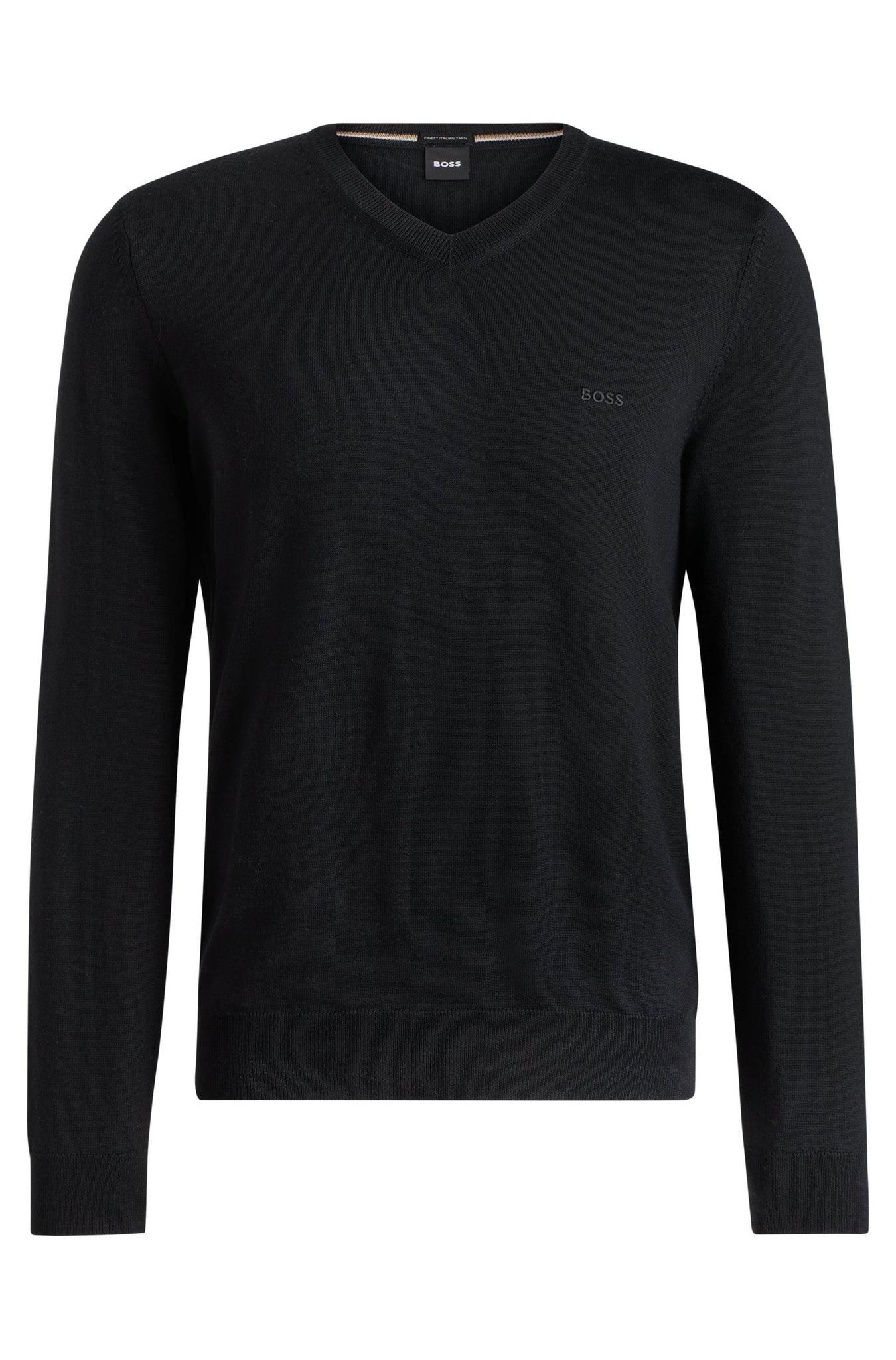 Verleihe deinen Looks mit diesem gerade geschnittenen BOSS Pullover mit V-Ausschnitt mehr Eleganz. Aus Schurwolle gestrickt. Mit Logo-Stickerei.