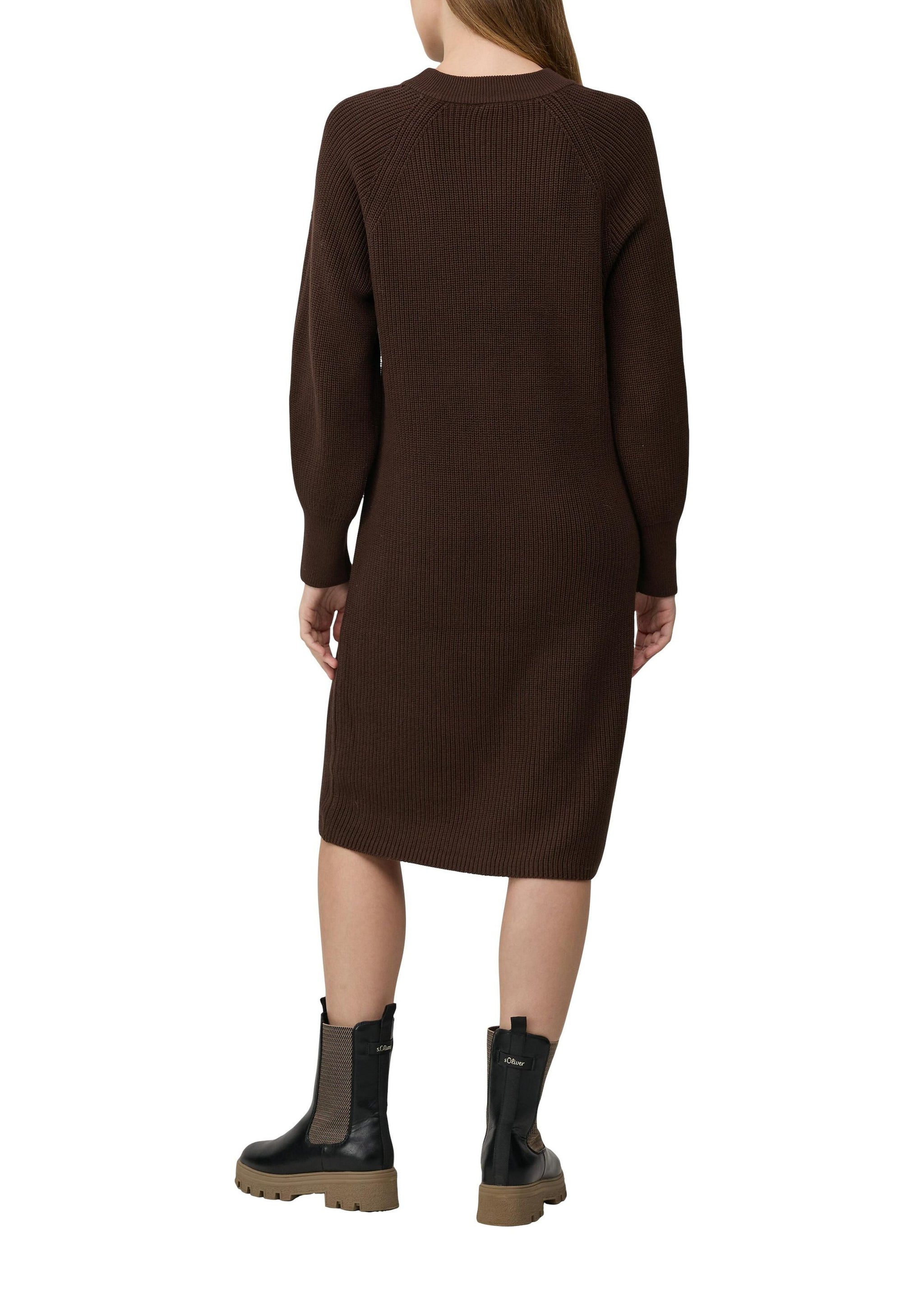 Das kuschelige Midi-Strickkleid aus weichem Baumwollmix verwöhnt dich an kälteren Tagen. Mit Raglanärmeln und Rippbündchen im entspannten Relaxed Fit kombiniert es lässigen Komfort mit stilvollem Casual-Look - perfekt für gemütliche Momente.