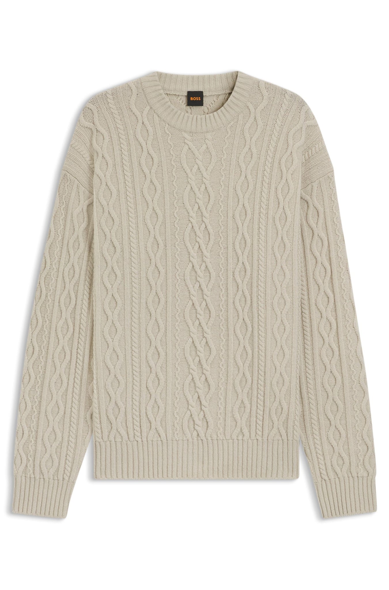 Knitted in temperature-regulating virgin wool, this cable-knit BOSS Menswear sweater is a classic layer. Relaxed fit with dropped shoulders. Super-soft feel. This product contains at least 60% better raw materials. This product is made with responsibly sourced wool. For us, responsibly sourced means mulesing free, and meeting the standards of the Five Freedoms of animal welfare.