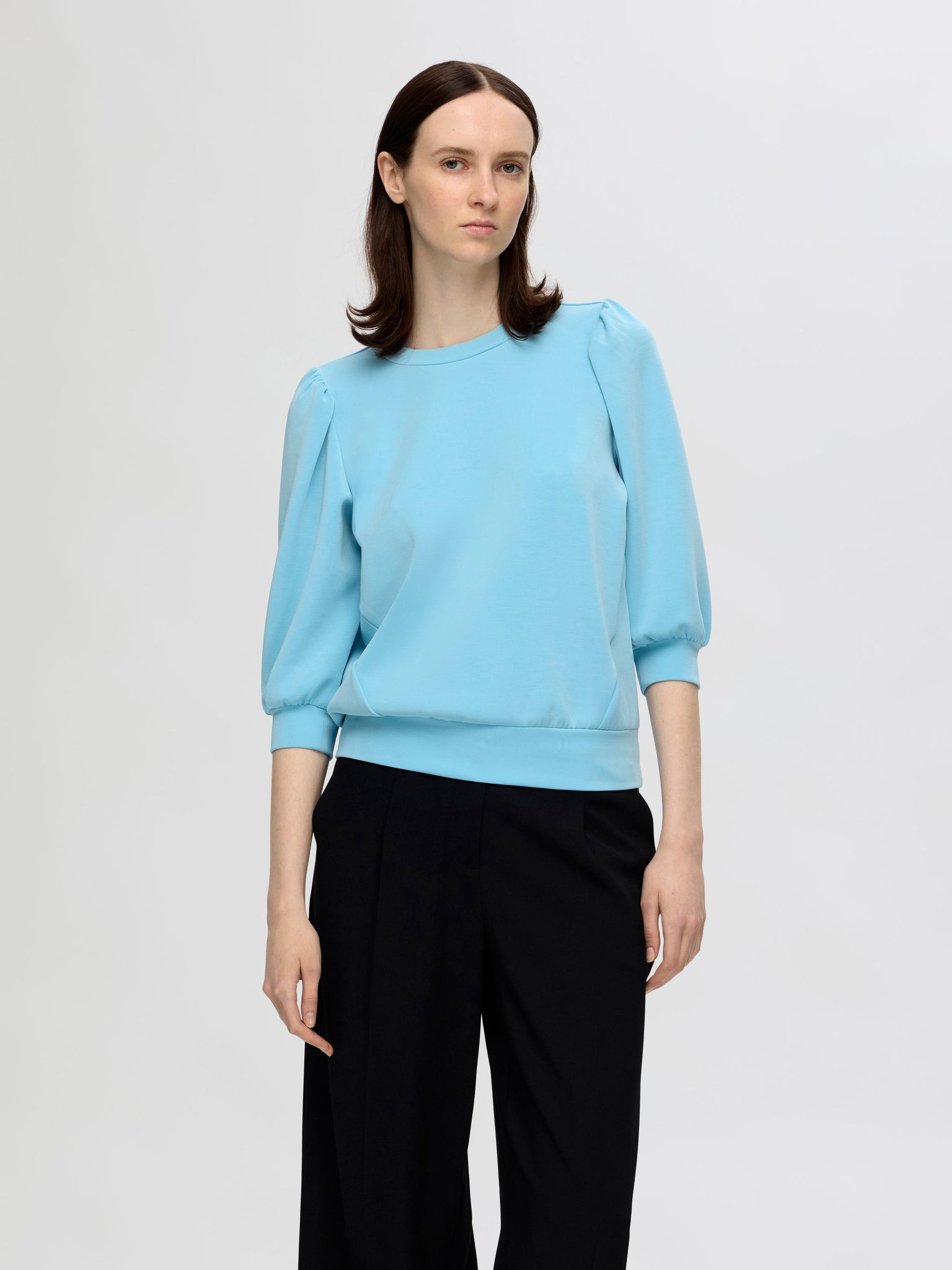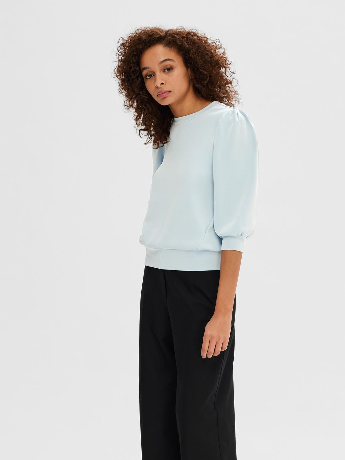 Dieses Sweatshirt ist der Inbegriff von Fashion und Funktionalität. Es basiert auf dem ultimativen Loungewear-Basic, dem Sweatshirt, und punktet mit schicken Details wie den Puffärmeln, während es gleichzeitig unglaublich bequem ist. Kombiniere es mit deiner Lieblingsjeans oder sogar mit einem Minirock und Stiefeln.- Rundhalsausschnitt- 3/4-Puffärmel- Anliegende Ärmelbündchen- Anliegender Saum- Nahtdetails an der VorderseiteMIT TENCEL™ MODALDieses Produkt enthält Modalfasern der Marke TENCEL™. Die hochwertigen Fasern werden aus natürlich gewachsenem Buchenholz gewonnen und umweltschonend hergestellt.