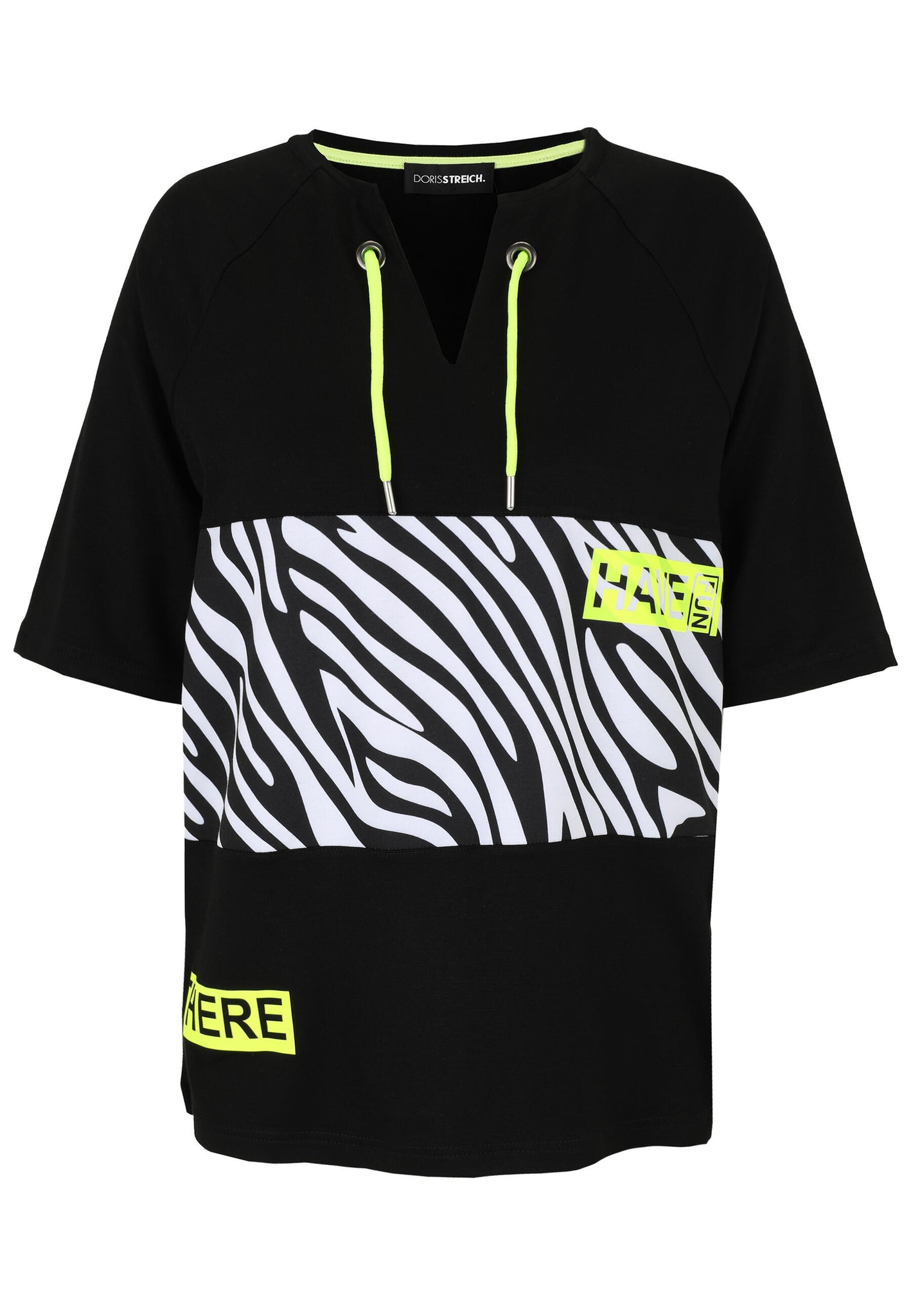 • Das Sweatshirt von Doris Streich ist aus softer elastischer Sweatware gefertigt. Ein Frontprint mit weißem Zebra-Muster mit Wording HAVE FUN machen dieses Sweatie mit langem Halbarm zu Ihrem neuen Lieblingsteil. Zwei Ösen mit dekorativen Kordeln und der lange Halbarm runden den lässigen Style ab.