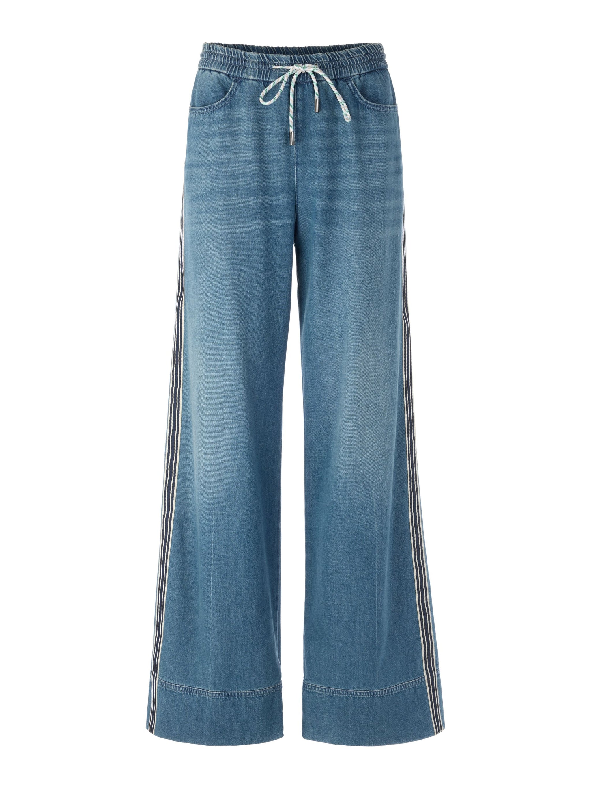 Super lässige Jeans WELKOM aus Baumwolle und Lyocell mit softem Griff. Weites Bein und hoher Bund sorgen für eine moderne Silhouette. Ein sportiver Stretchbund mit Kordel bietet bequemen Halt, während vier Taschen und kontrastierende Seitenstreifen den Look abrunden. Das Model ist 179 cm groß und trägt 38.