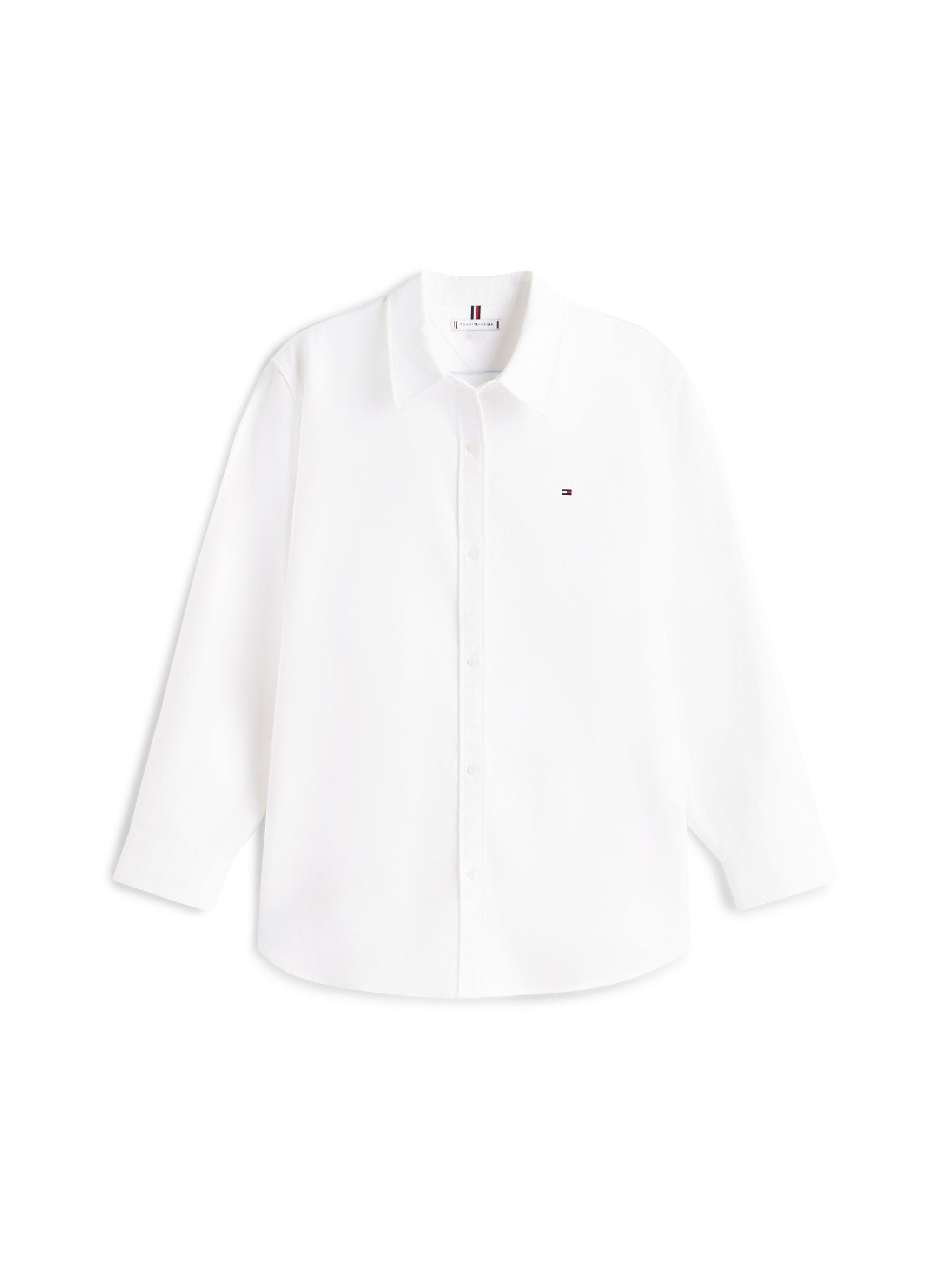 • This size-inclusive collection features specially tailored designs that will let you show off your curves while looking perfectly on-trend.The classic pure cotton Oxford shirt is given a modern interpretation in this design, with its relaxed fit and embroidered branding.Highlights Pure Oxford cotton Yarn dyed Semi-spread collar One-button cuffs Shirttail hem Signature tape inside neckline and on hem Tommy Hilfiger branding Tommy Hilfiger flag embroidery on chestShape & fit Relaxed fitComposition & care 100% cotton