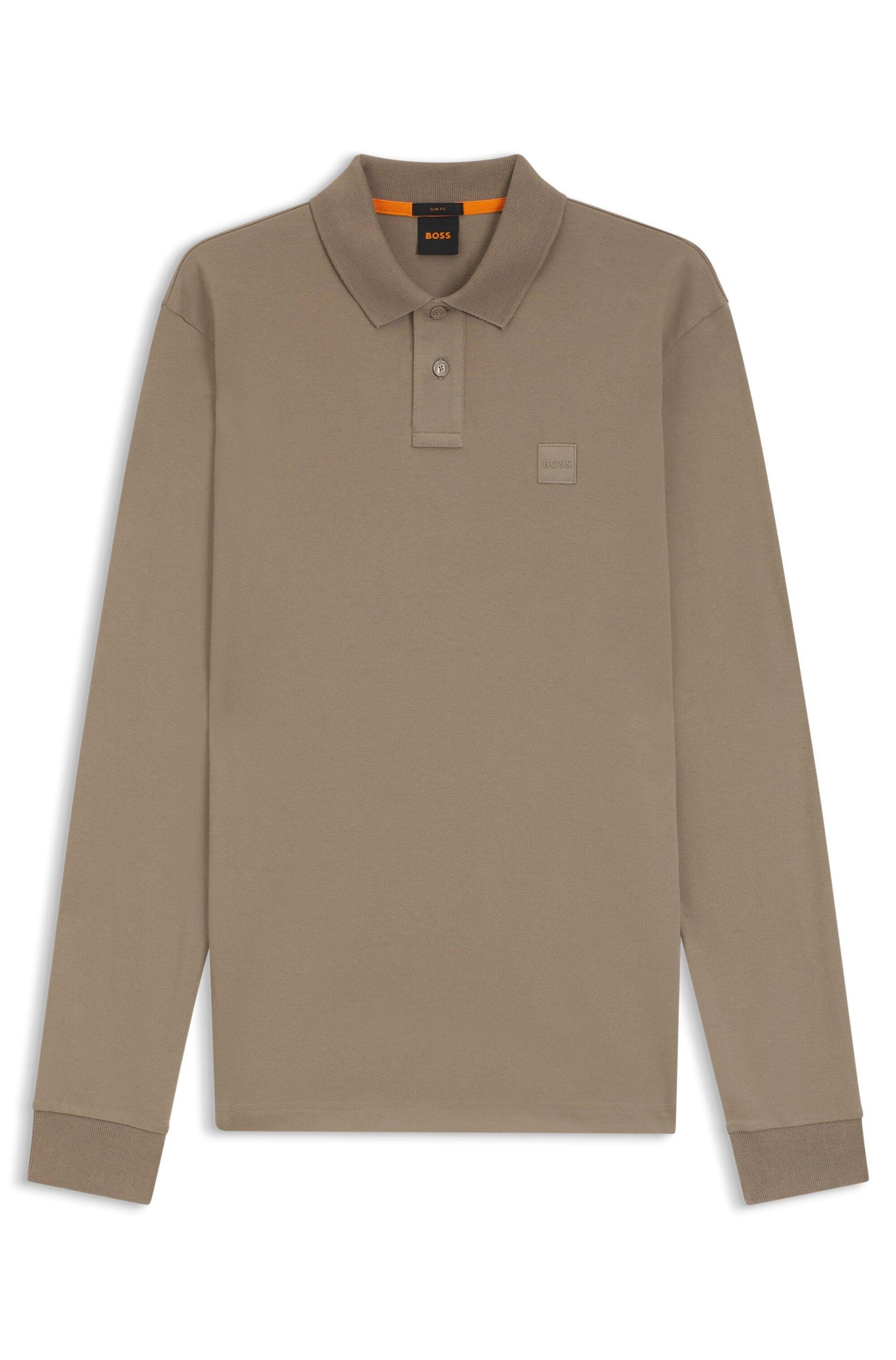 Das schmal geschnittene BOSS Poloshirt mit Logo-Aufnäher sorgt für eine cleane Silhouette. Stretch-Baumwolle mit sportiver Piqué-Webstruktur.