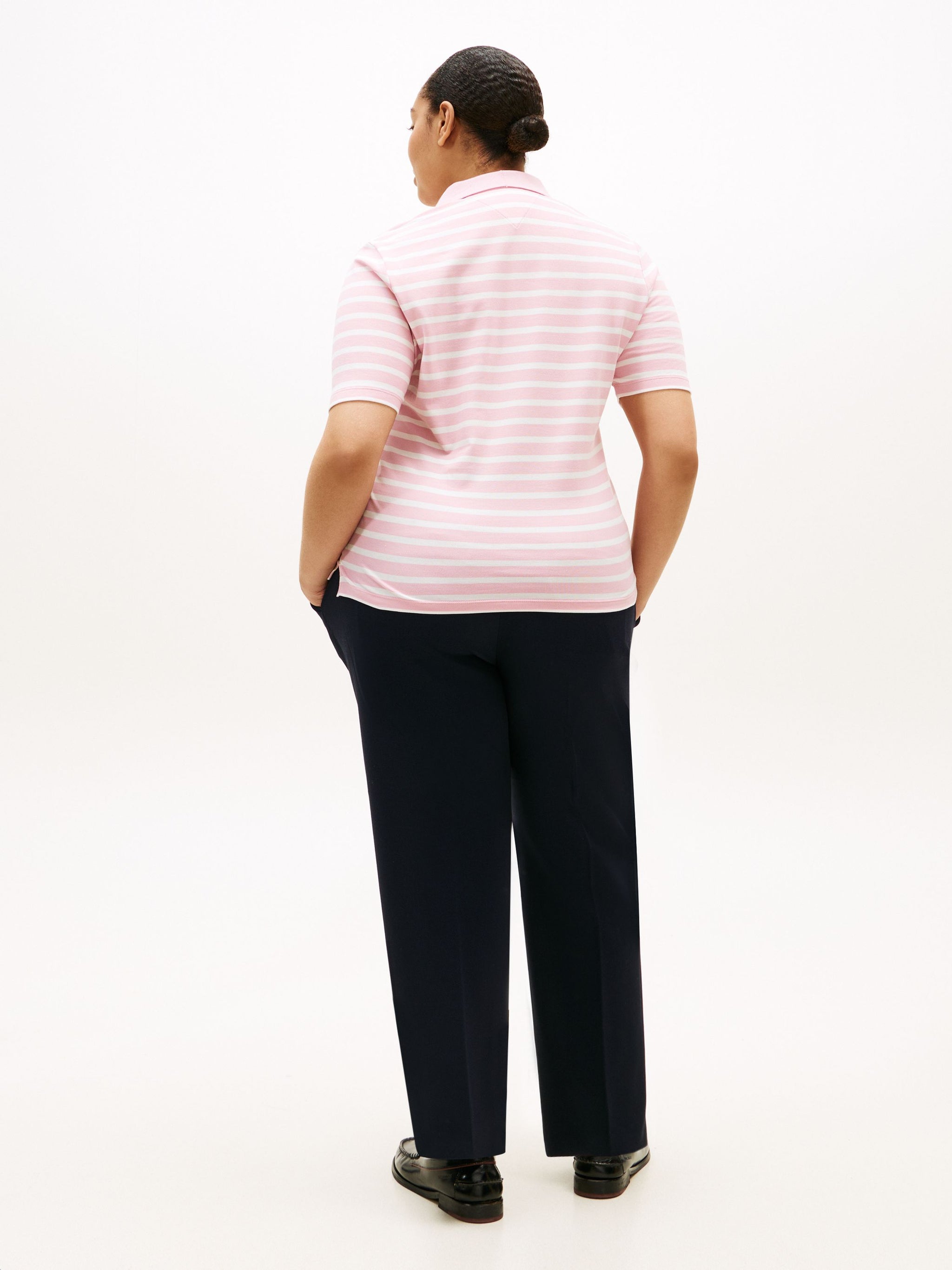 • This size-inclusive collection features specially tailored designs that will let you show off your curves while looking perfectly on-trend.A stretch cotton pique texture gives this smart, regular-fit polo shirt a structured finish, perfect for curating smart daytime looks.Highlights Stretch cotton pique 1985 Collection Polo collar Four-button placket Signature tape inside neckline Tommy Hilfiger branding Tommy Hilfiger flag embroidery on chestShape & fit Regular fitComposition & care 96% cotton, 4% elastane