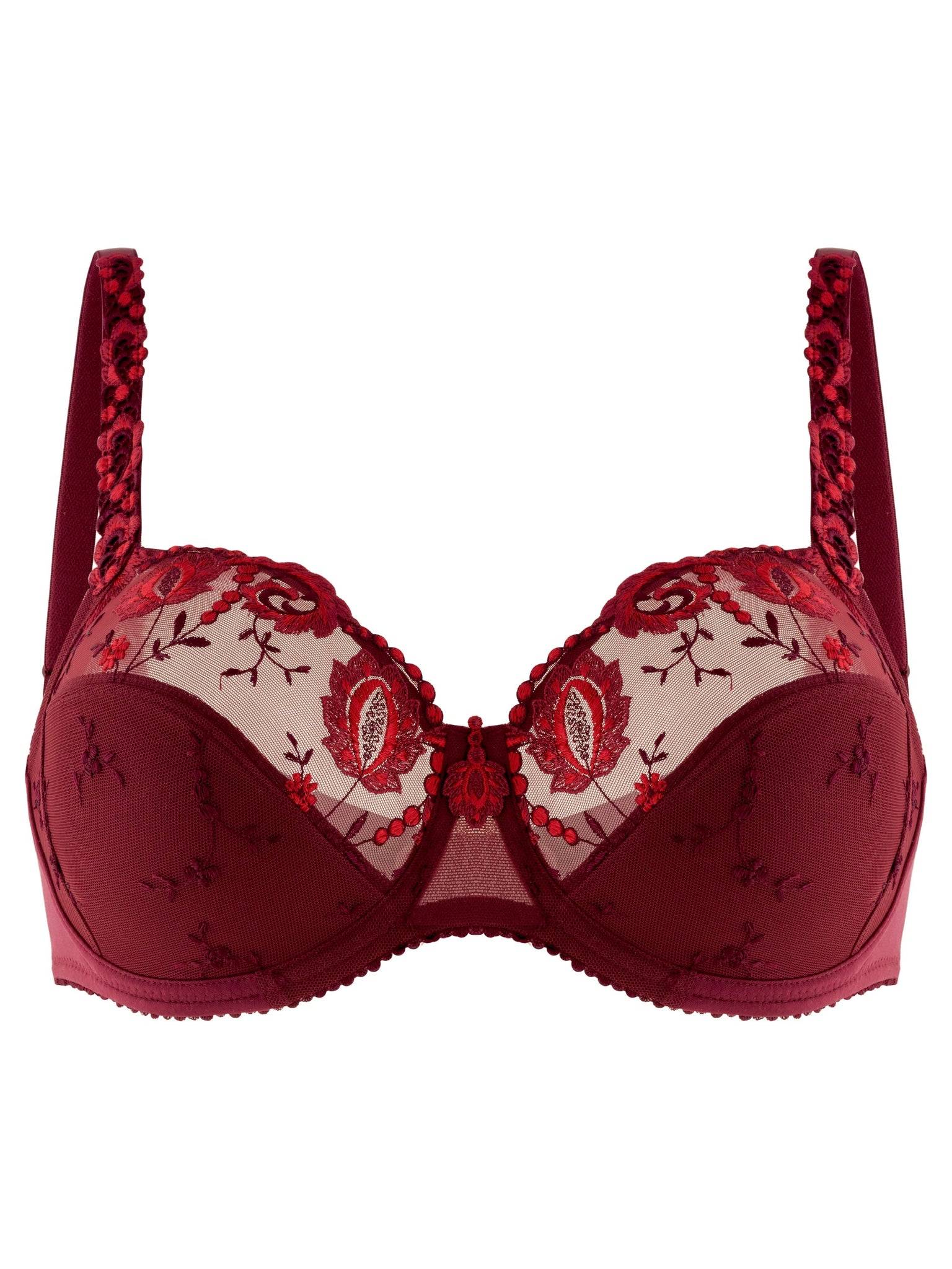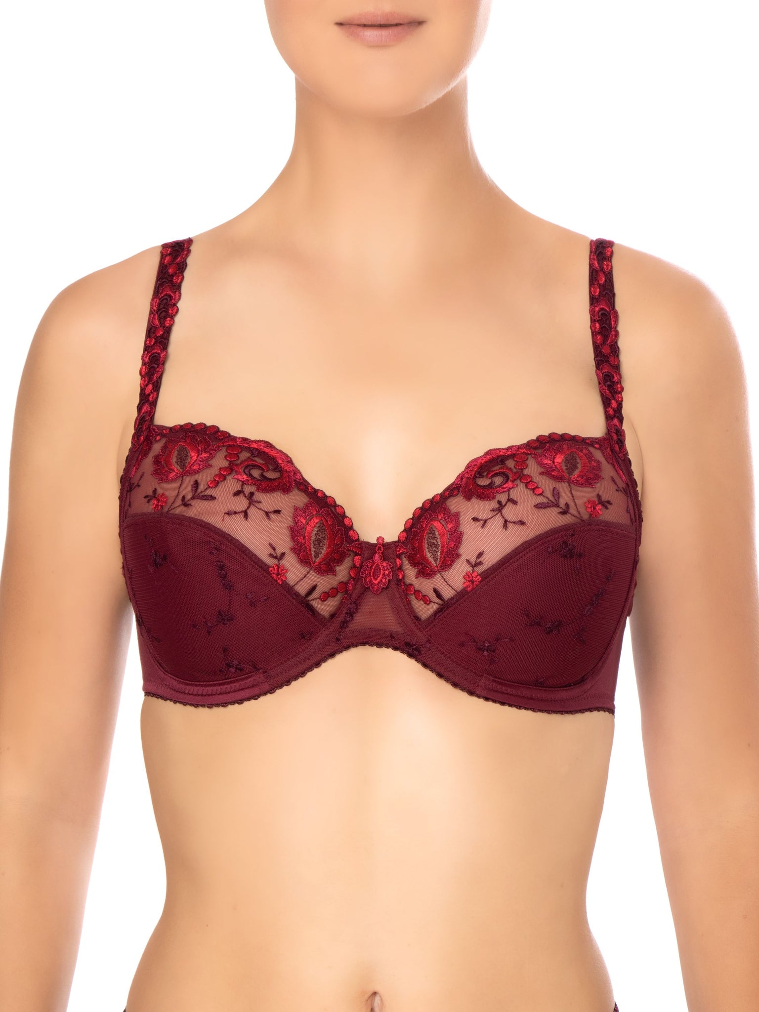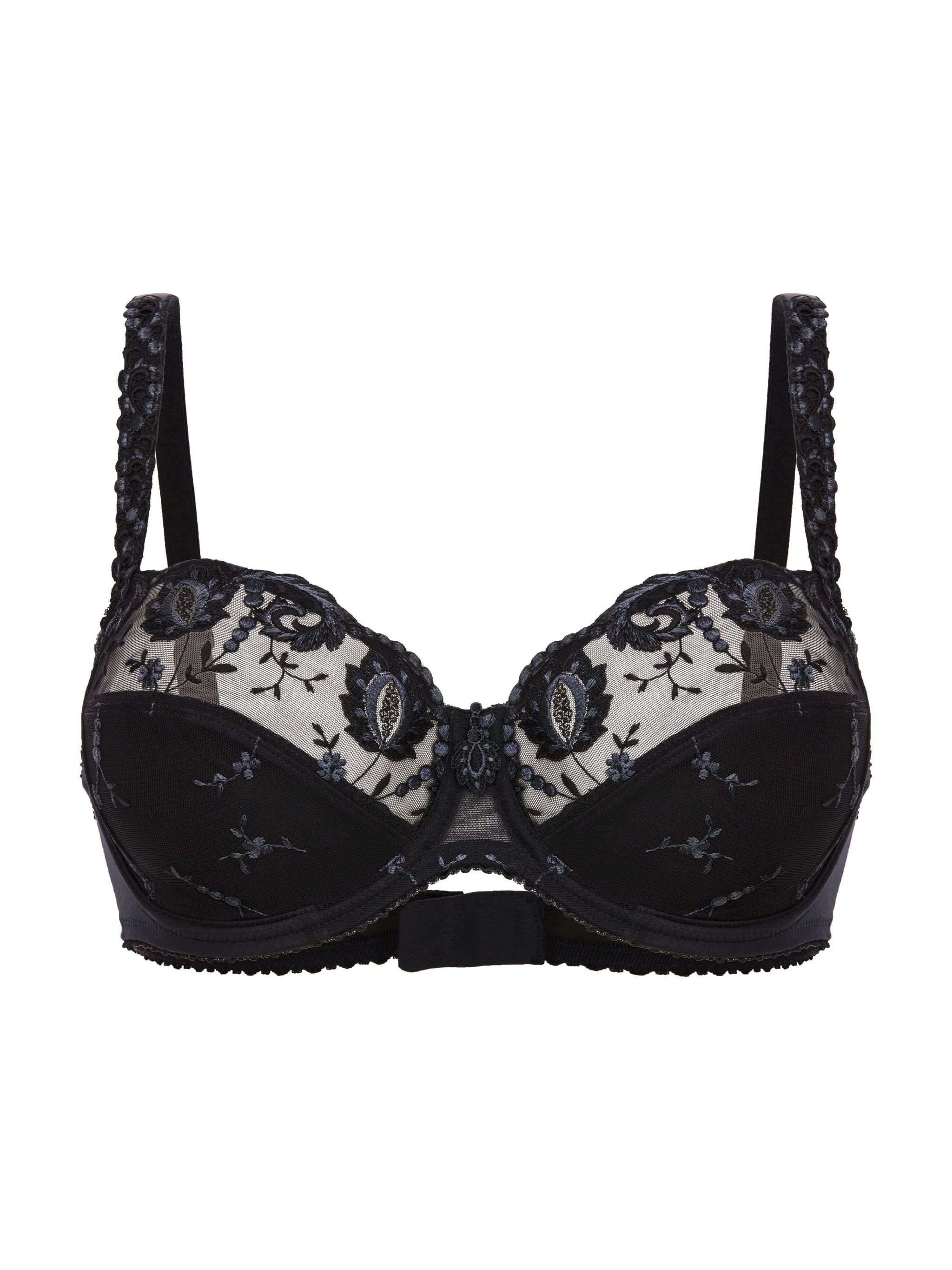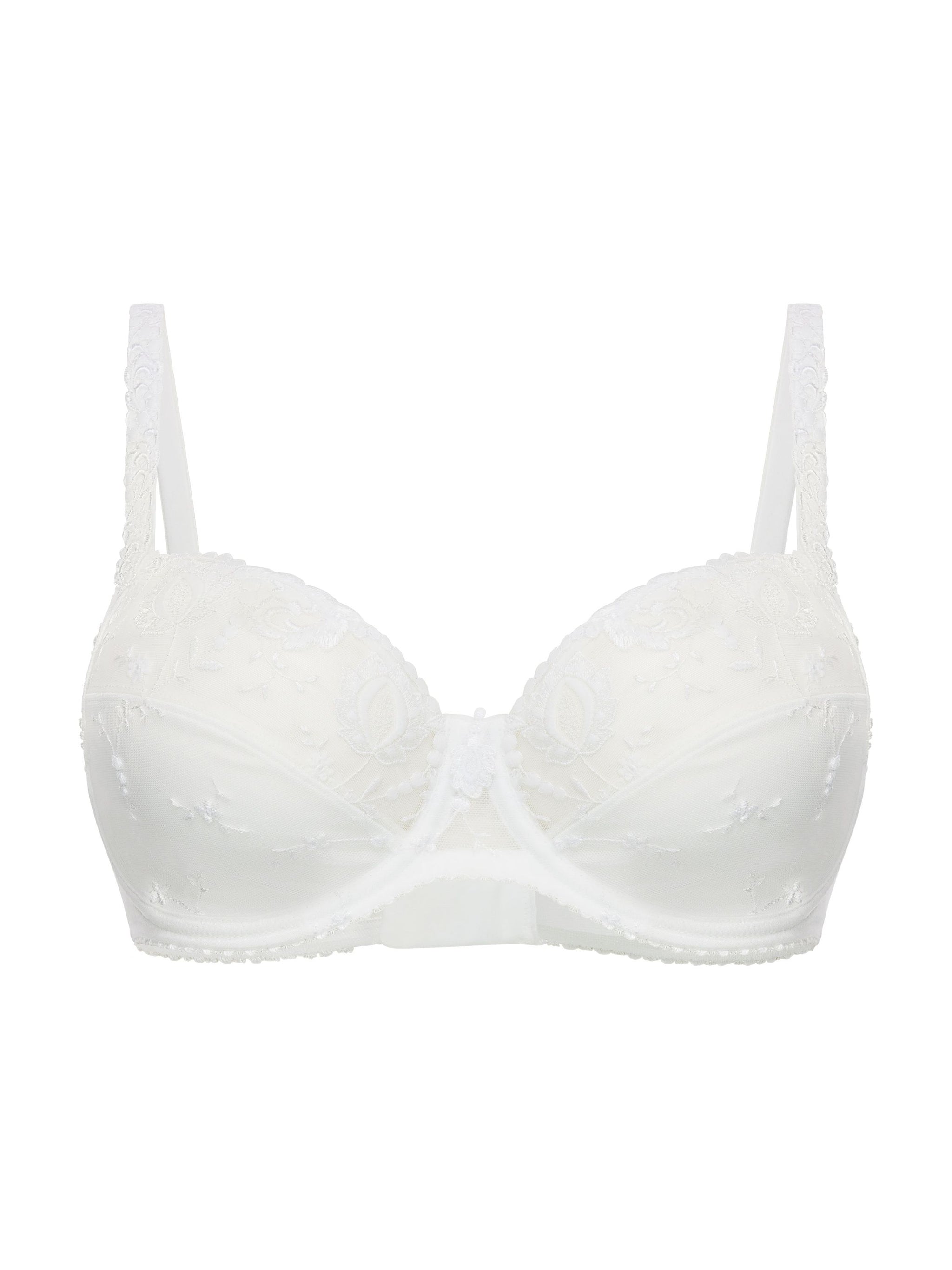 * Dieser sinnlich-feminine Bügel-BH der Linie Provence begeistert mit ausdrucksstarker Stickerei auf Cups und Trägern sowie einem perfektem Fit. Die 3-geteilte Schnittform kreiert ein volles, rundes Dekolleté, sie stützt und zentriert die Brust zugleich. Die elastische Abschlußkante schmiegt sich perfekt an die Körperform an. * Mit Komfort-Bügel * Akzentuierte Formung * Dekorativer Außenträger ist elastisch und längenverstellbar * U-förmiger Rücken * Perfekte Passform durch dreiteiliges Cup * Trägerbreite, Rücken und Mittelsteg angepasst an den Größenverlauf * Fester Halt durch doppellagiges Cup-Material und seitliche Cupstütze * 3-fach verstellbarer Soft-Seal Haken-Ösen-Verschluss * Hochwertige und ausdrucksstarke Stickerei kombiniert mit dekorativem Abschlussband * Logo-Applikation im Rücken und Stickereimotiv am Steg