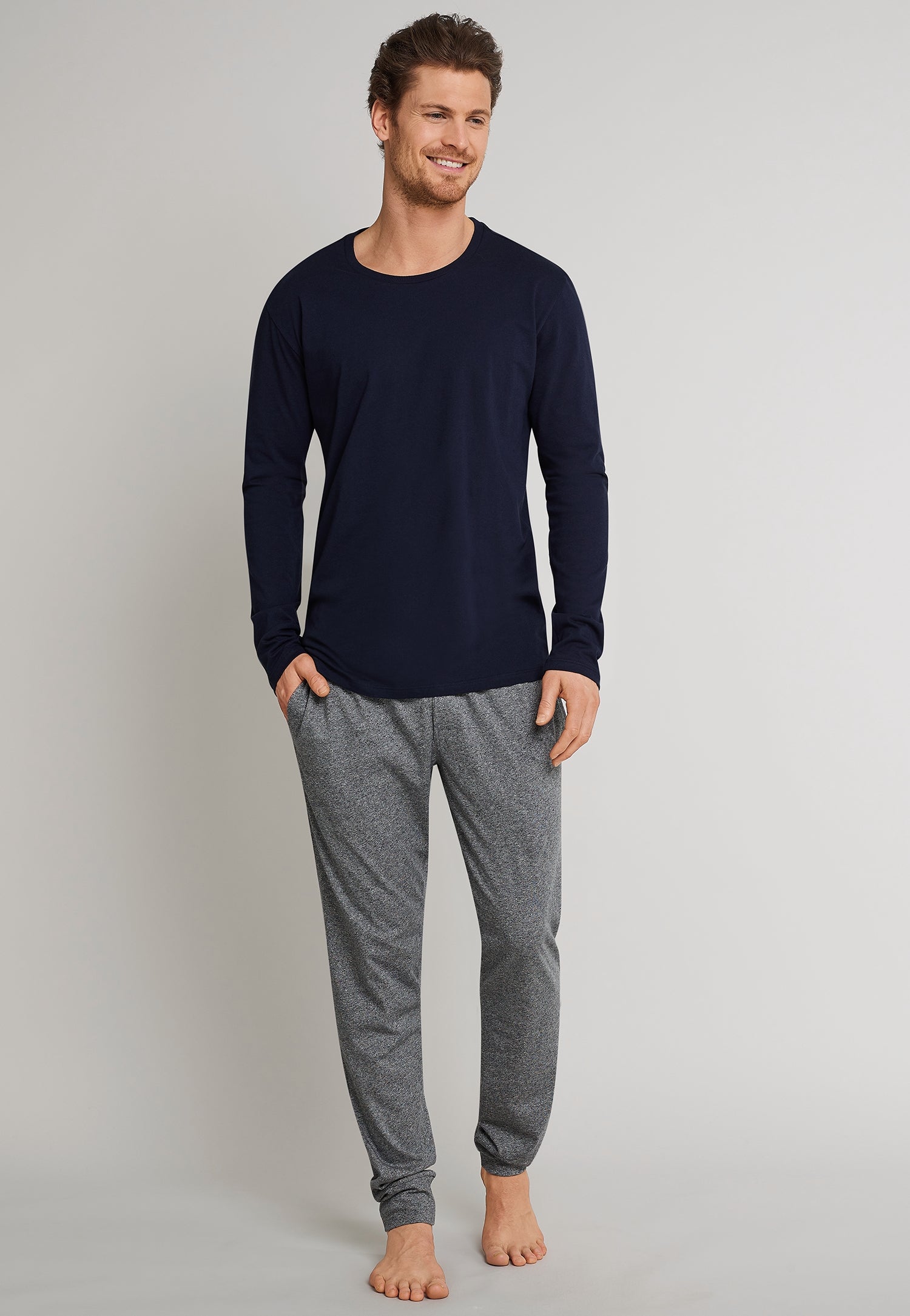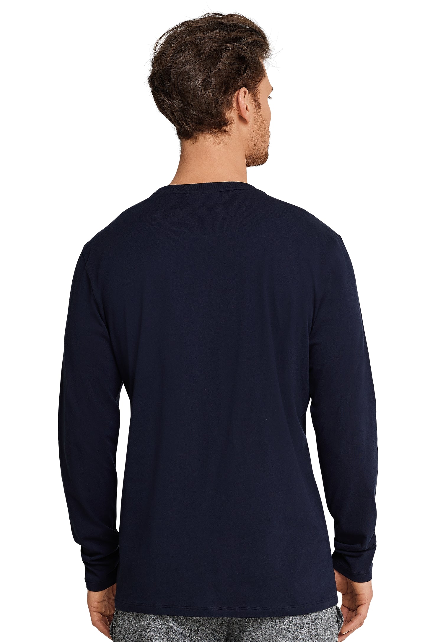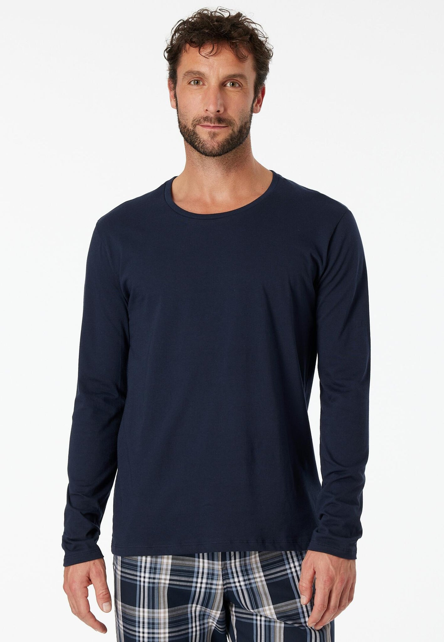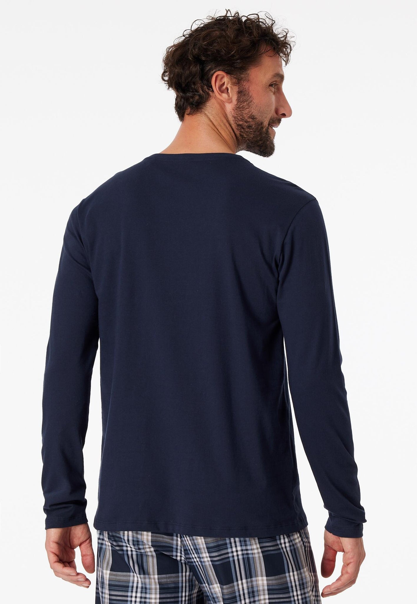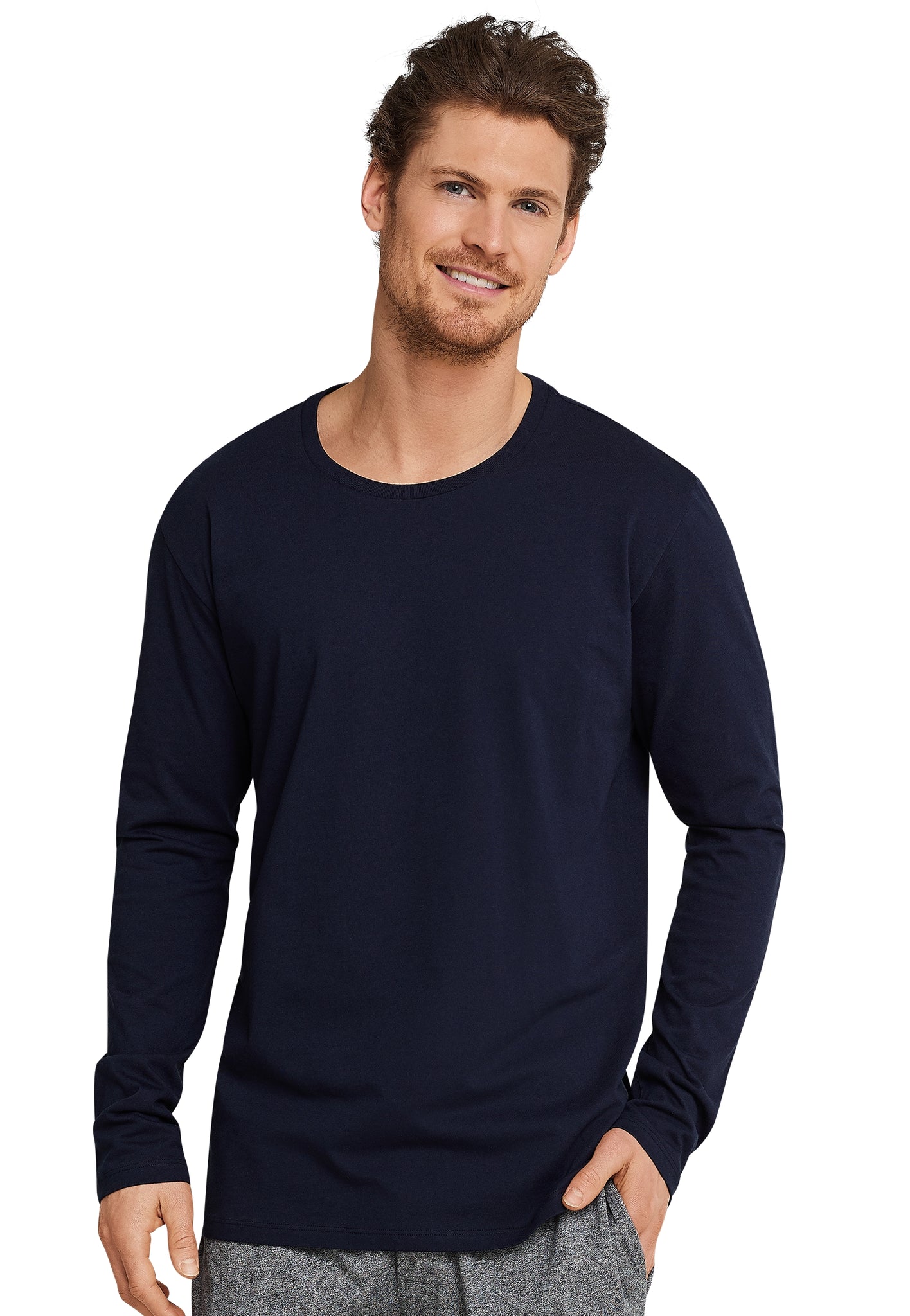 100 % reine, weiche Baumwolle und ein lässiger Schnitt - mehr braucht es nicht, um aus einem simplen Basic ein neues Lieblingsstück zu machen! So, wie bei diesem dunkelblauen Langarmshirt für Herren. Das Longsleeve lässt sich mit seinem runden Halsausschnitt ganz unkompliziert kombinieren und verspricht in weichem Single Jersey hohen Tragekomfort. Ideal für entspannte Tage und Nächte in bester SCHIESSER-Qualität!
