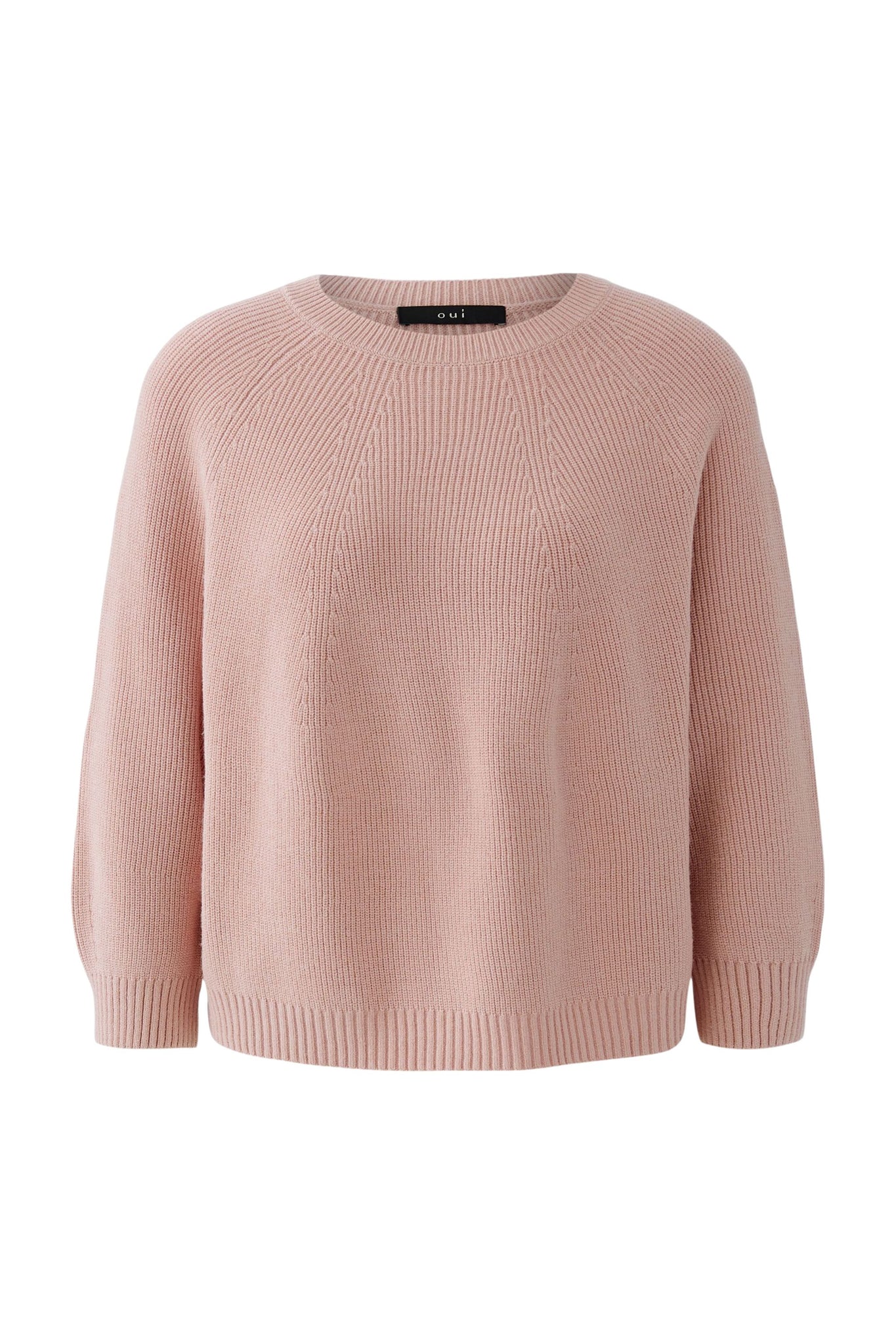 Weiche, schmusige Viskosemischung in feiner Rippe gestrickt Oversized geschnitten, leicht verkürzte Länge Rundhals mit kleinem Strickbündchen Besondere Raglanform mit 3/4 Arm Strickbündchen am Ärmel und Saum mit Elasthan verstärkt * Länge bei Größe 36: 53cm