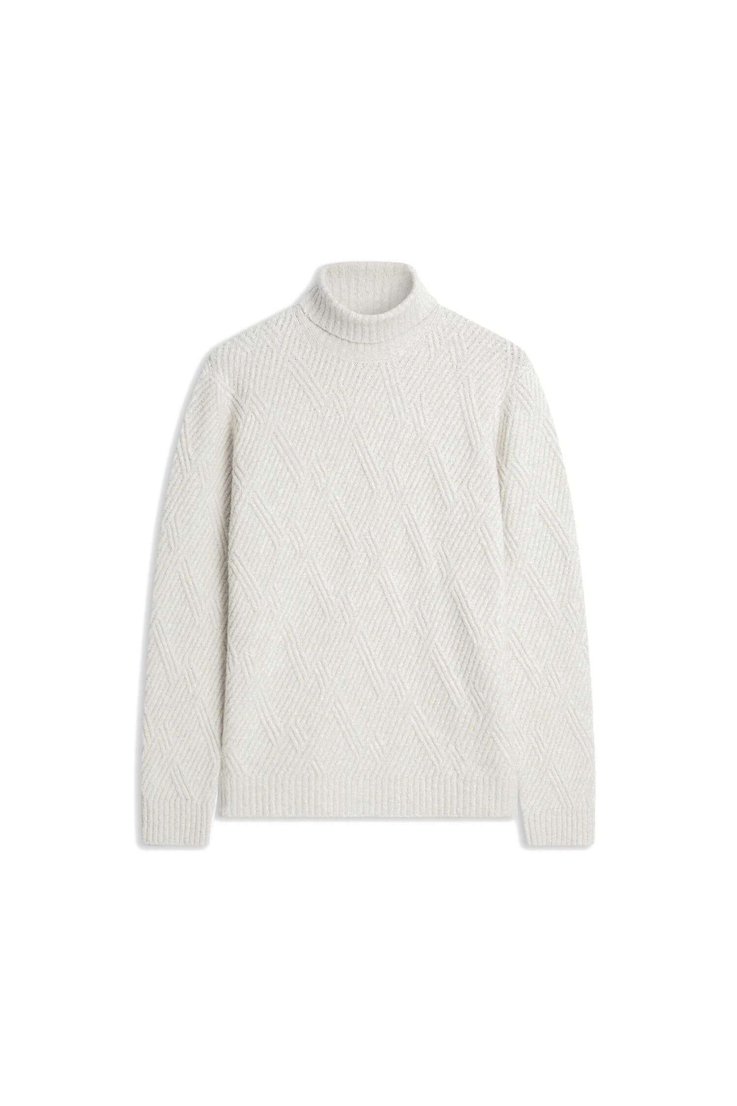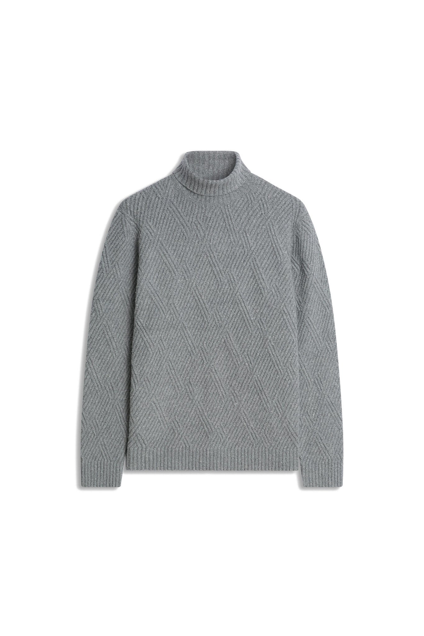 Wärmend und stilvoll: Der strukturierte Rippenstrick und der klassische Rollkragen verleihen dem Look Tiefe und Charakter.