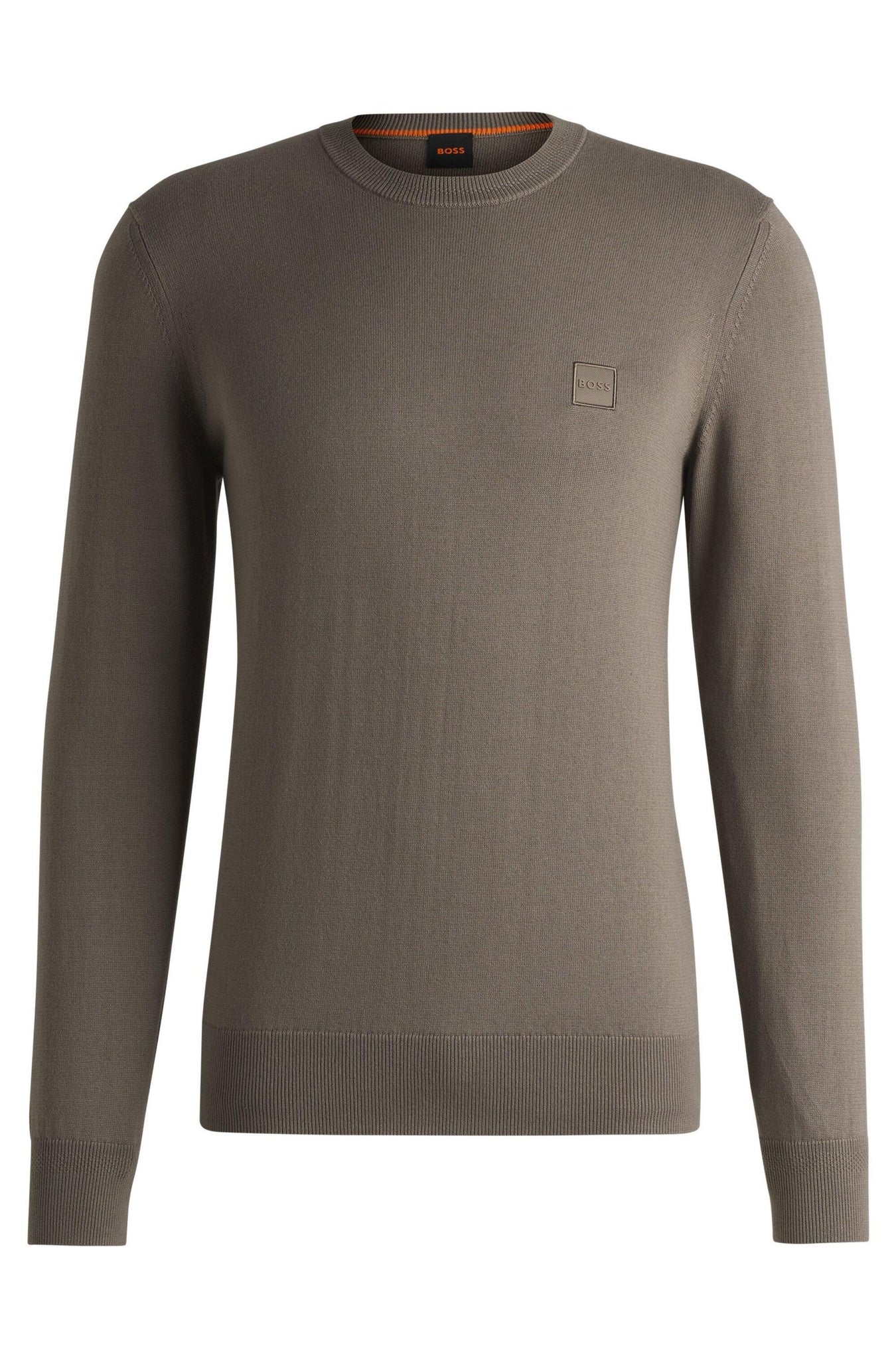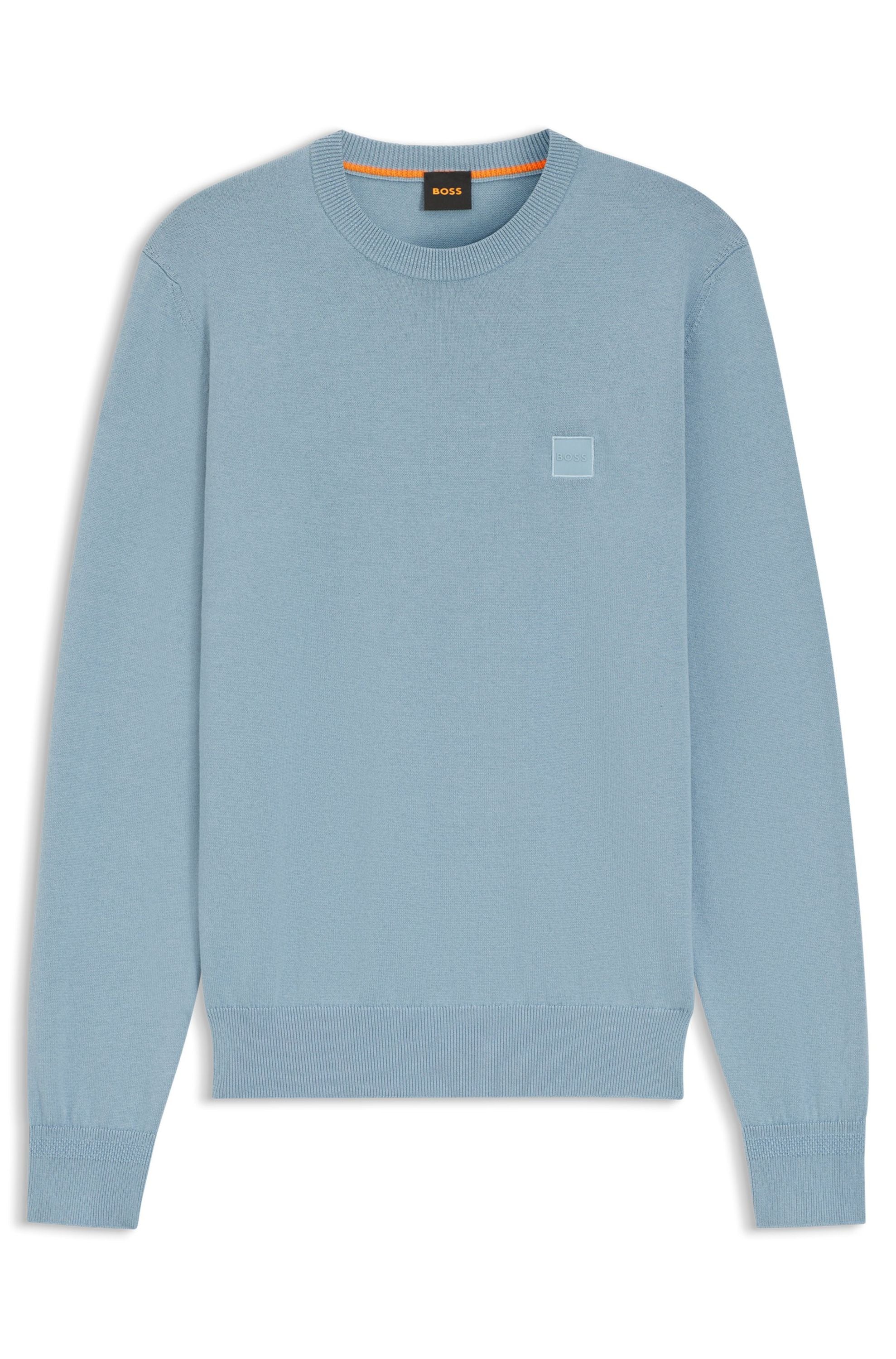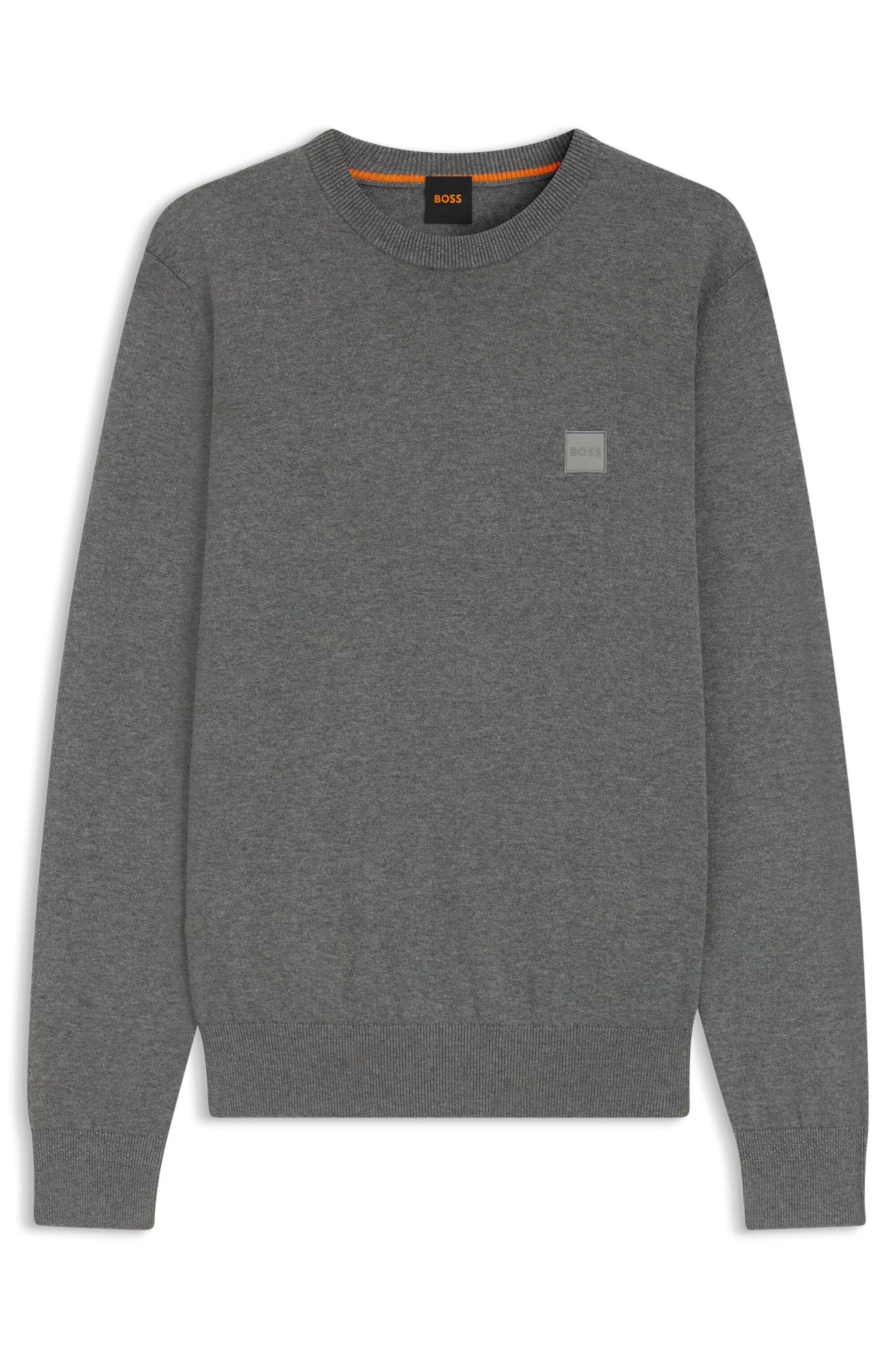 Der elegante BOSS Pullover aus einem edlen Baumwoll-Mix mit Kaschmir-Anteil ist mit einem Logo-Aufnäher versehen. Legere gerade Passform.