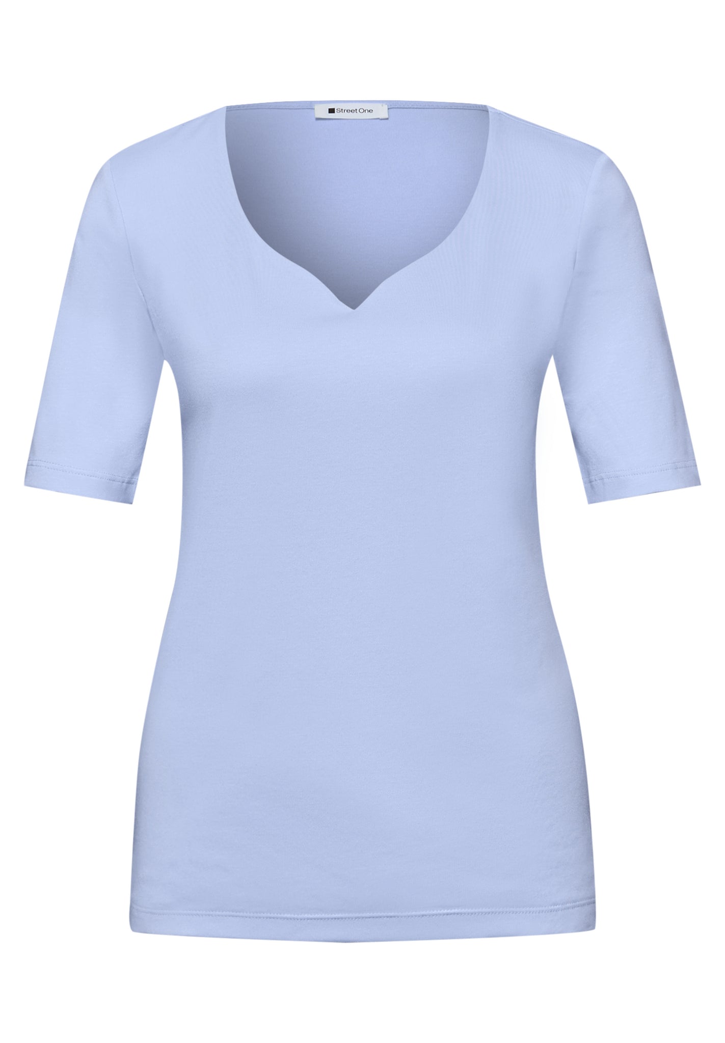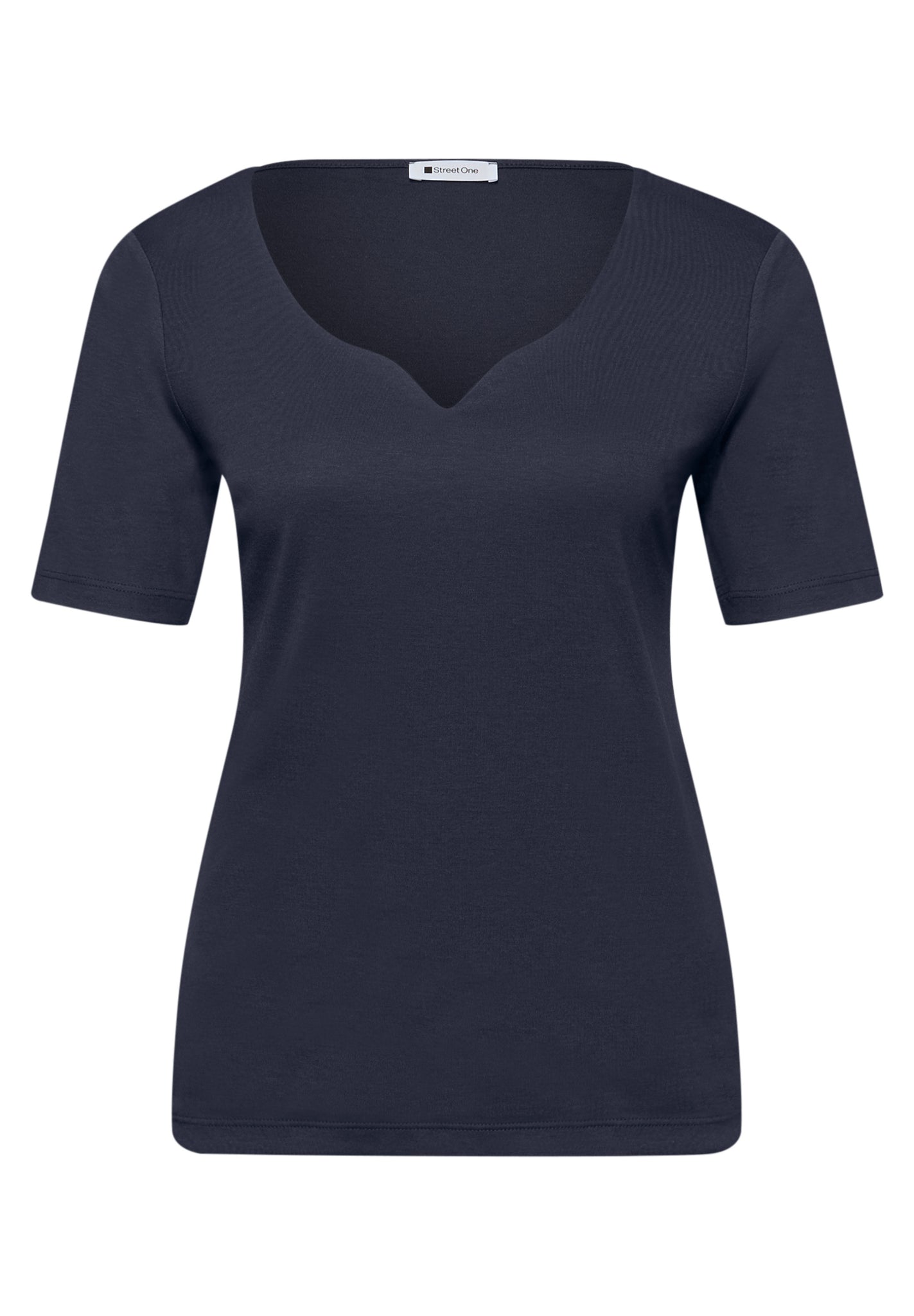 • Das Basic T-Shirt von Street One für Damen verzaubert mit einem femininen Herzausschnitt. Die reine Baumwolle bietet dir ein angenehm weiches Tragegefühl im Alltag. Mit seinem schlichten Design und der Unifarbe lässt sich das Shirt im Style Ada vielseitig kombinieren – von casual bis feminin-leger. Ein wunderschönes Essential für deine Garderobe. Jerseyshirt Casual Herzausschnitt Kurzarm Schlicht und vielseitig Material: 50% Baumwolle, 50% Modal