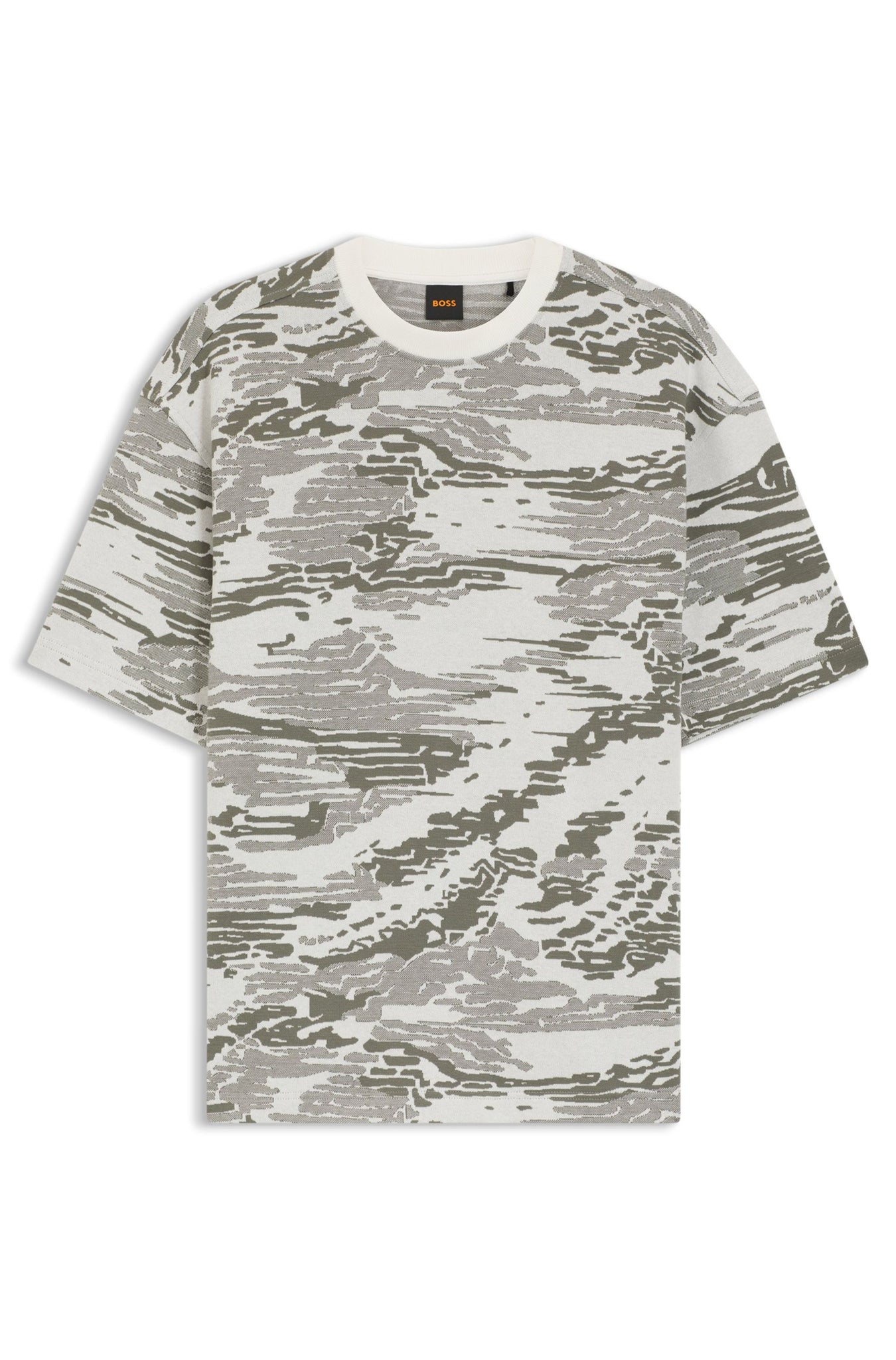 Verleihe deinen Casual-Outfits mehr Wirkung mit dem Statement-Camouflage-Jacquard dieses BOSS T-Shirts. Aus weicher, atmungsaktiver Baumwolle gefertigt.