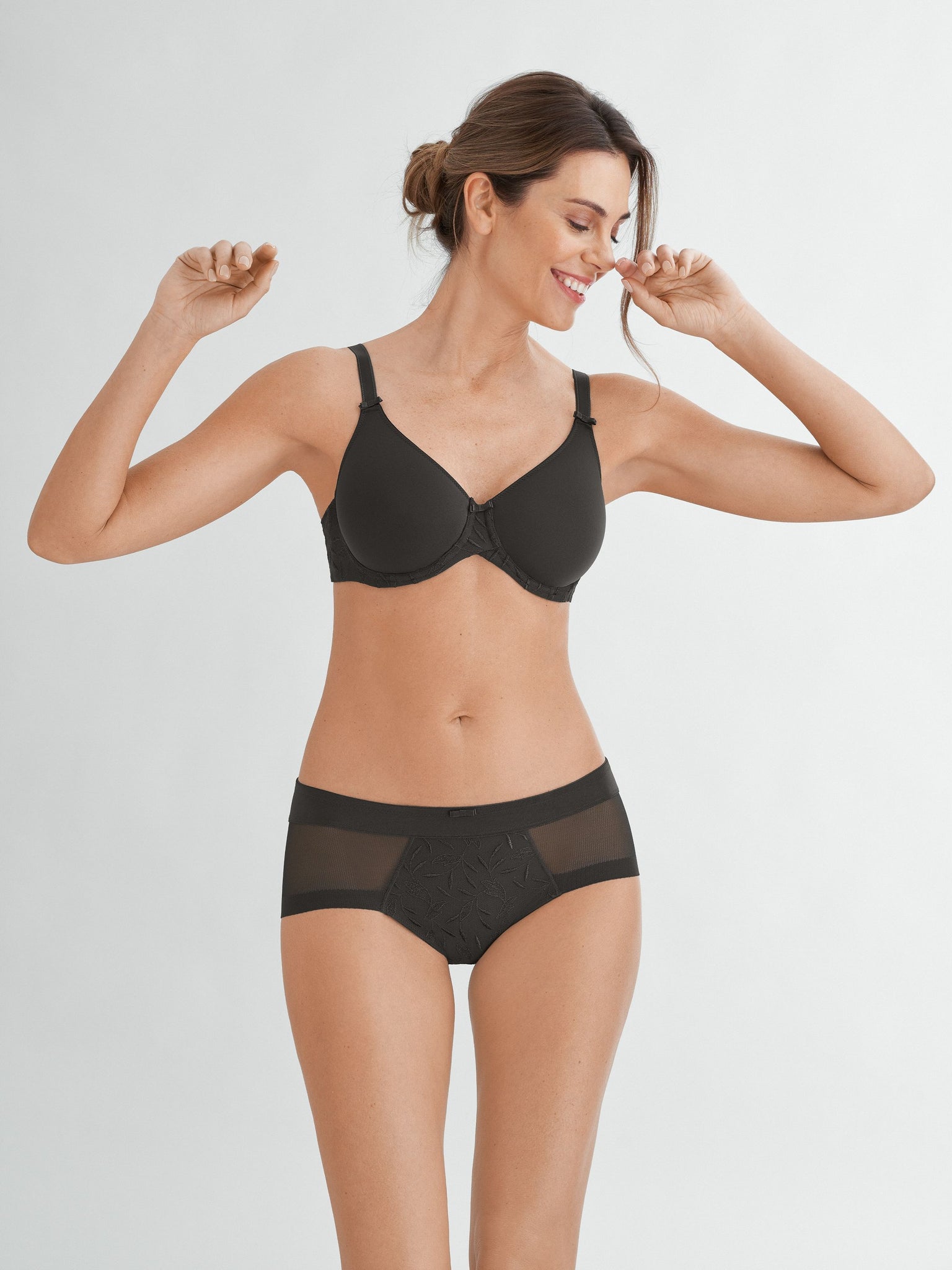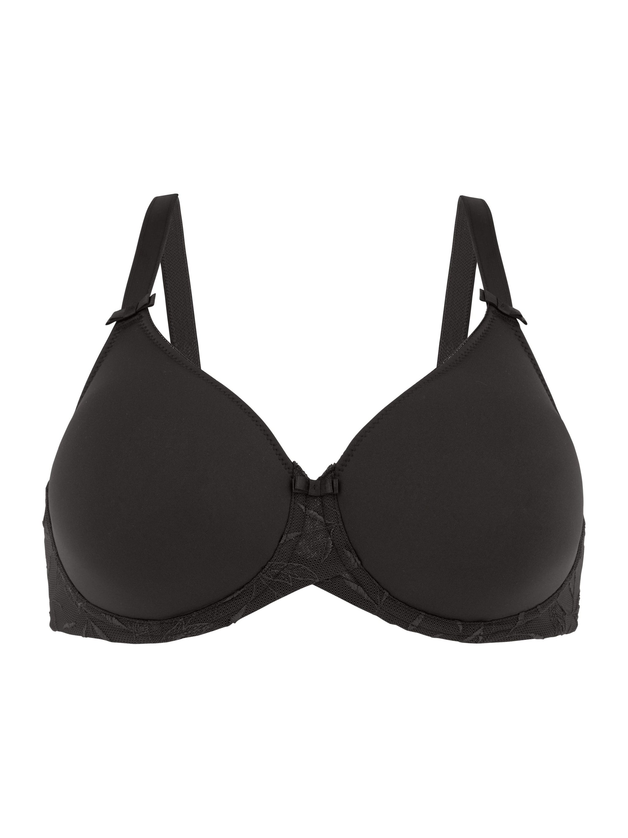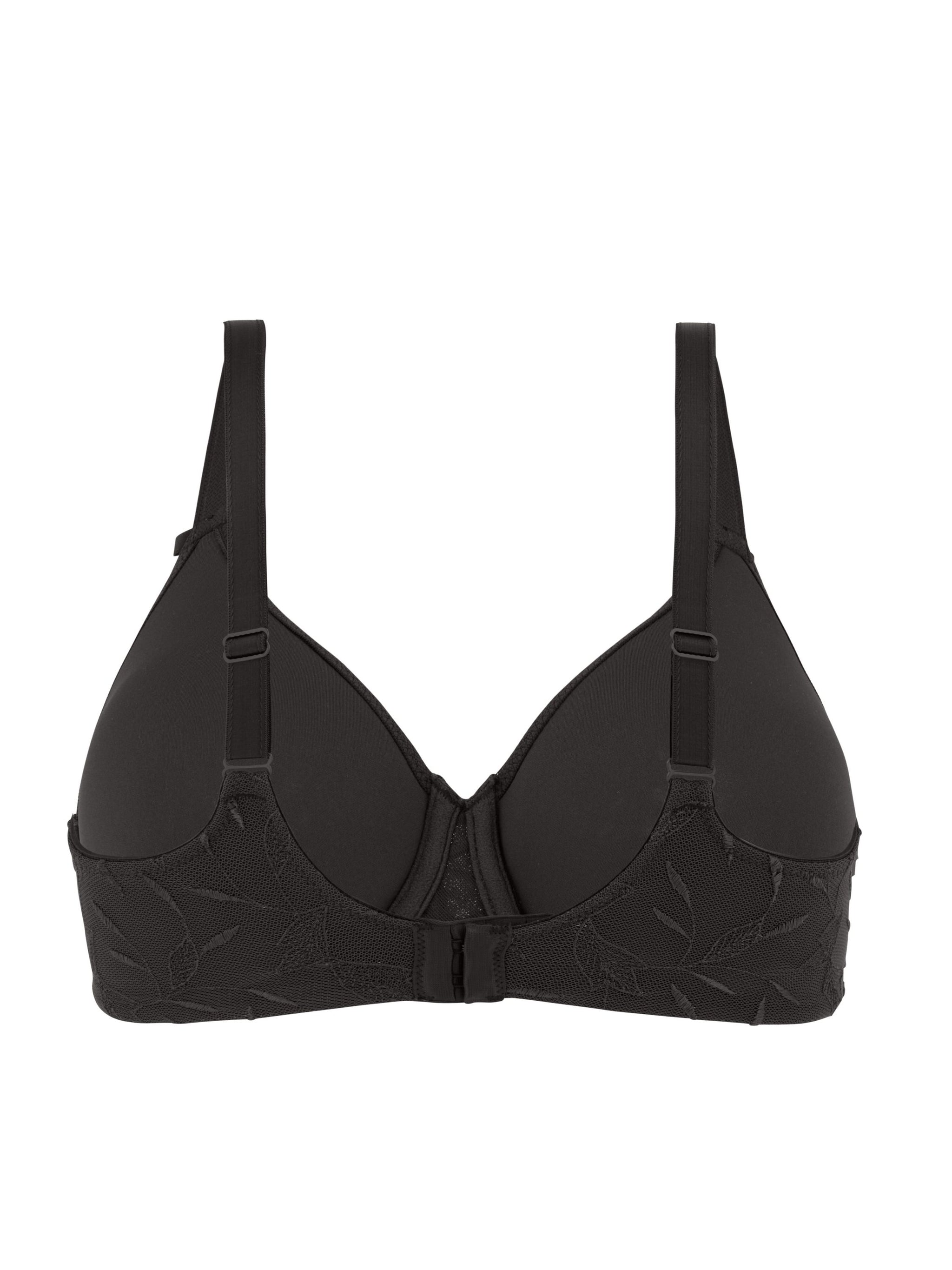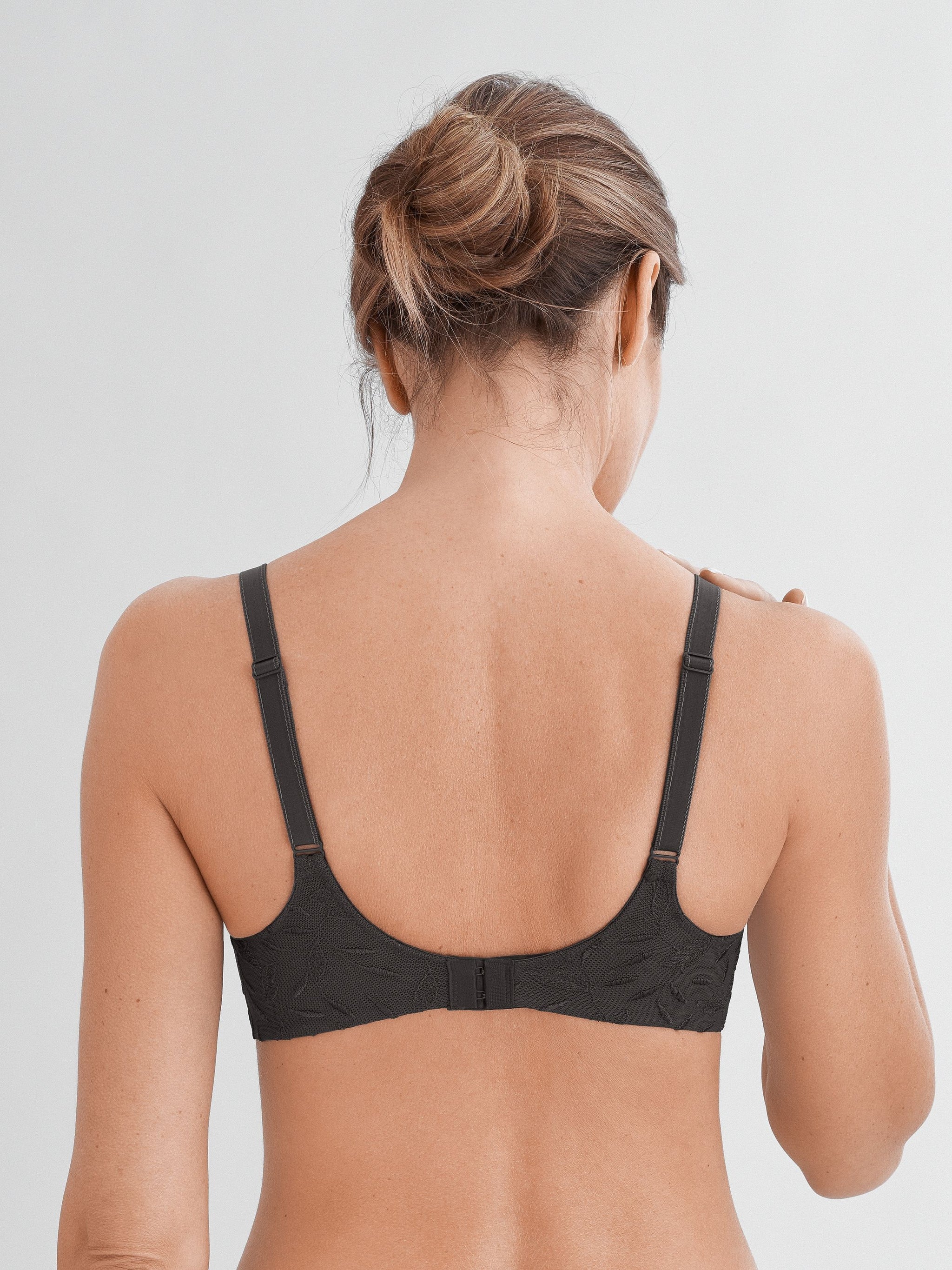 * Mit Komfort-Bügel * Runde Formung * Mittelträger ist elastisch und längenverstellbar * U-förmiger Rücken * Angenehmes Tragegefühl durch nahtlose Cupverarbeitung (Molding) * Atmungsaktivität und Formstabilität durch Spacer-Cup * Blickdichte Verarbeitung * Trägerbreite, Rücken und Mittelsteg angepasst an den Größenverlauf * Seitliches Formstäbchen und breiter Rückenteil für perfekten Halt * Fester Halt durch doppellagiges Rückenmaterial * Second-Skin-Gefühl durch hohen Elastan-Anteil * 3-fach verstellbarer Soft-Seal Haken-Ösen-Verschluss * Softe, luxuriöse Microfaser wird mit abstrakt moderner Stickerei im Blätterdesign kombiniert