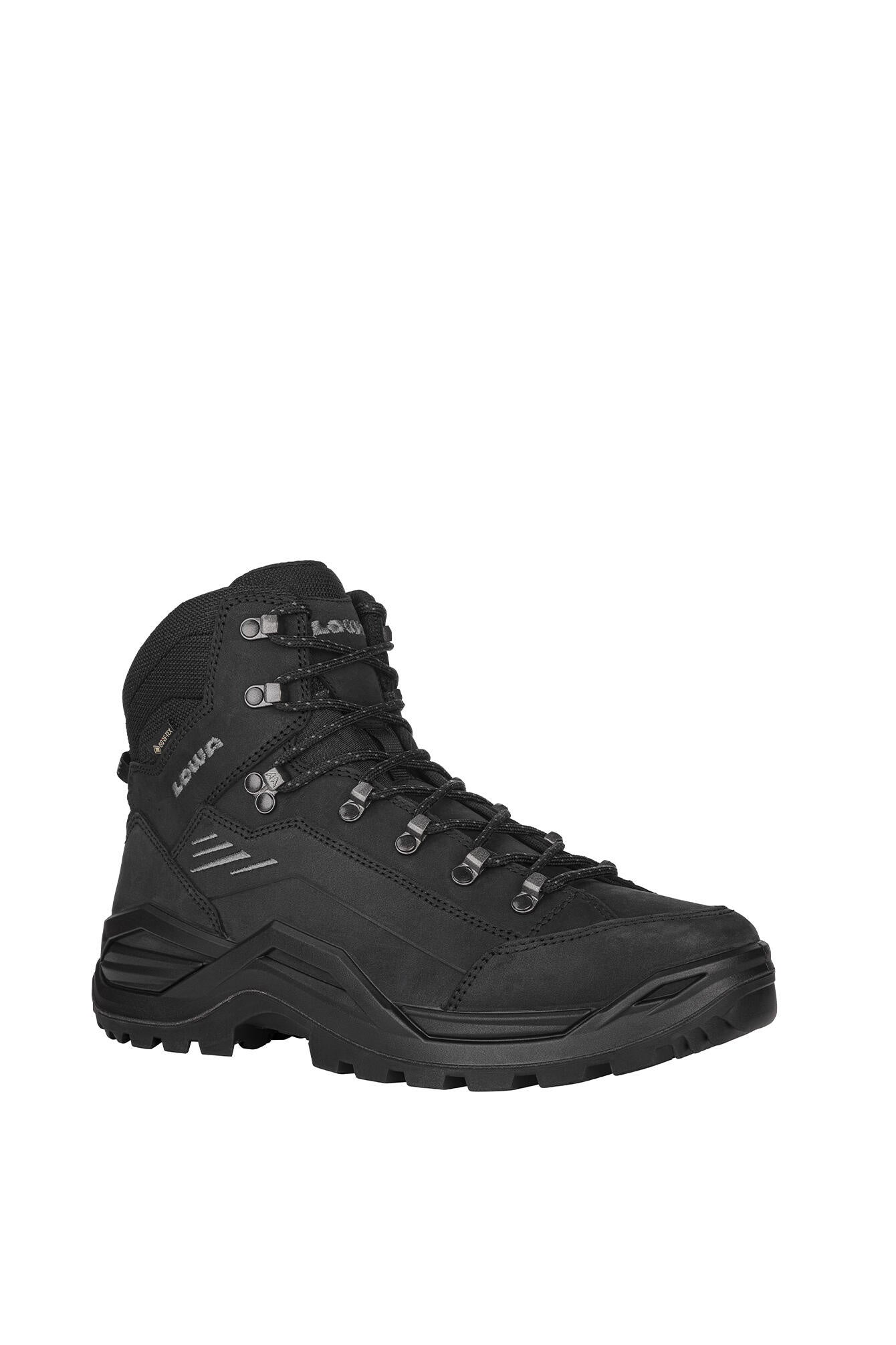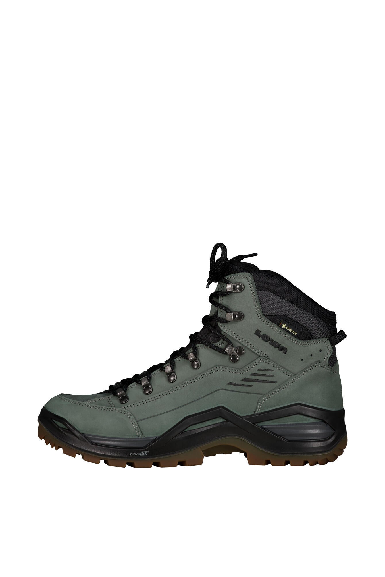 Über Jahrzehnte stand der RENEGADE genau für ein Attribut: die perfekte Passform. Um diesen Aspekt weiter auszubauen, wurde der neue RENEGADE EVO GTX MID um einige spezifische Details ergänzt. So wurde zum Beispiel am Schaft auf zusätzlichen Komfort geachtet, indem die Innenseite des Vorfußbereichs komplett aus einem Stück gefertigt wurde. Durch den Verzicht auf überflüssige Nähte kann sich das hier verarbeitete Nubukleder flexibel an die individuelle Form der Fußknochen anpassen, um Reibung zu verhindern und das Großzehengelenk zu entlasten. Hierzu trägt auch die Zwei-Zonen-Schnürung bei, die sich jetzt dank neu gestalteter Klemmhaken noch leichter an die individuellen Anforderungen anpassen lässt. Zusätzlichen Komfort bietet die wasserdichte und atmungsaktive GORE-TEX-Membran. Darüber hinaus verfügt der neue RENEGADE über ein neu gestaltetes Sohlenpaket. Die direkt angespritzte Zwischensohle besteht hier aus zwei Dämpfungsteilen. Der erste Teil besteht aus LOWA® DYNAPU®, beim zweiten Teil handelt es sich um einen festeren Teil, der zusammen mit dem CROSS OVER FRAME für eine optimale Führung sorgt. Für ordentlich Grip sorgt die neue VIBRAM RENE TRAC®.
